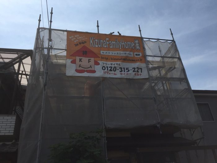 本日の工事は足場組立、脱衣場改装、浴室改装、耐震工事、給水管やり変え、工事です。