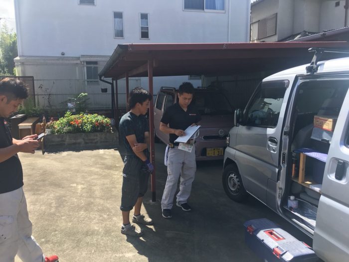 本日の工事は大佐市淀川区においてシステムキッチンとカップボードの工事です!!