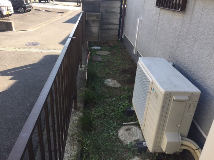 大阪市西淀川区で外構犬走りに雑草が繁殖の為コンクリート打設工事を実施