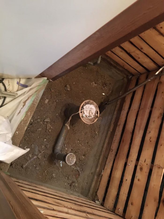 同時にトイレも解体してタイル床の下に敷きつめてあった土を取り除いていきます。