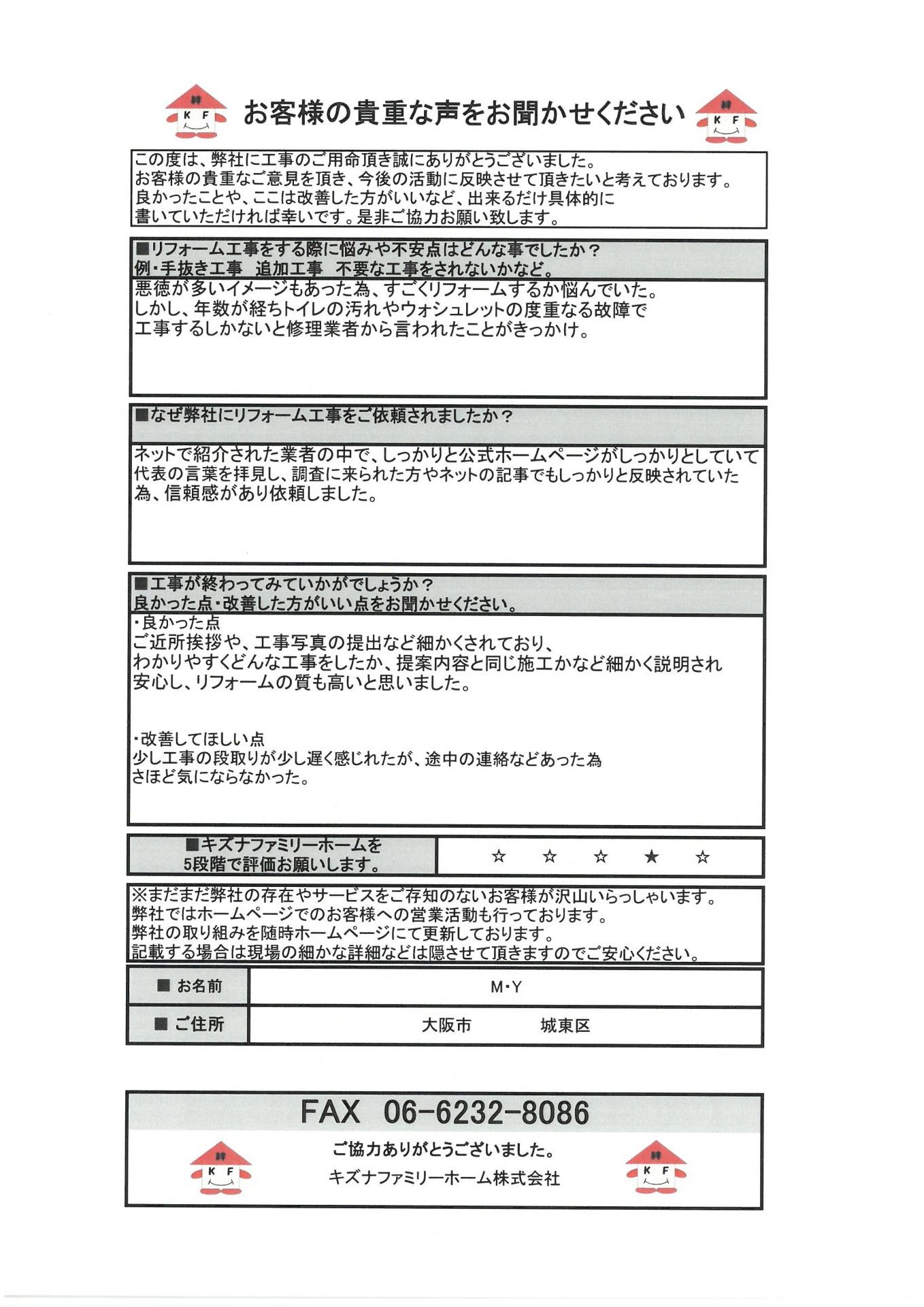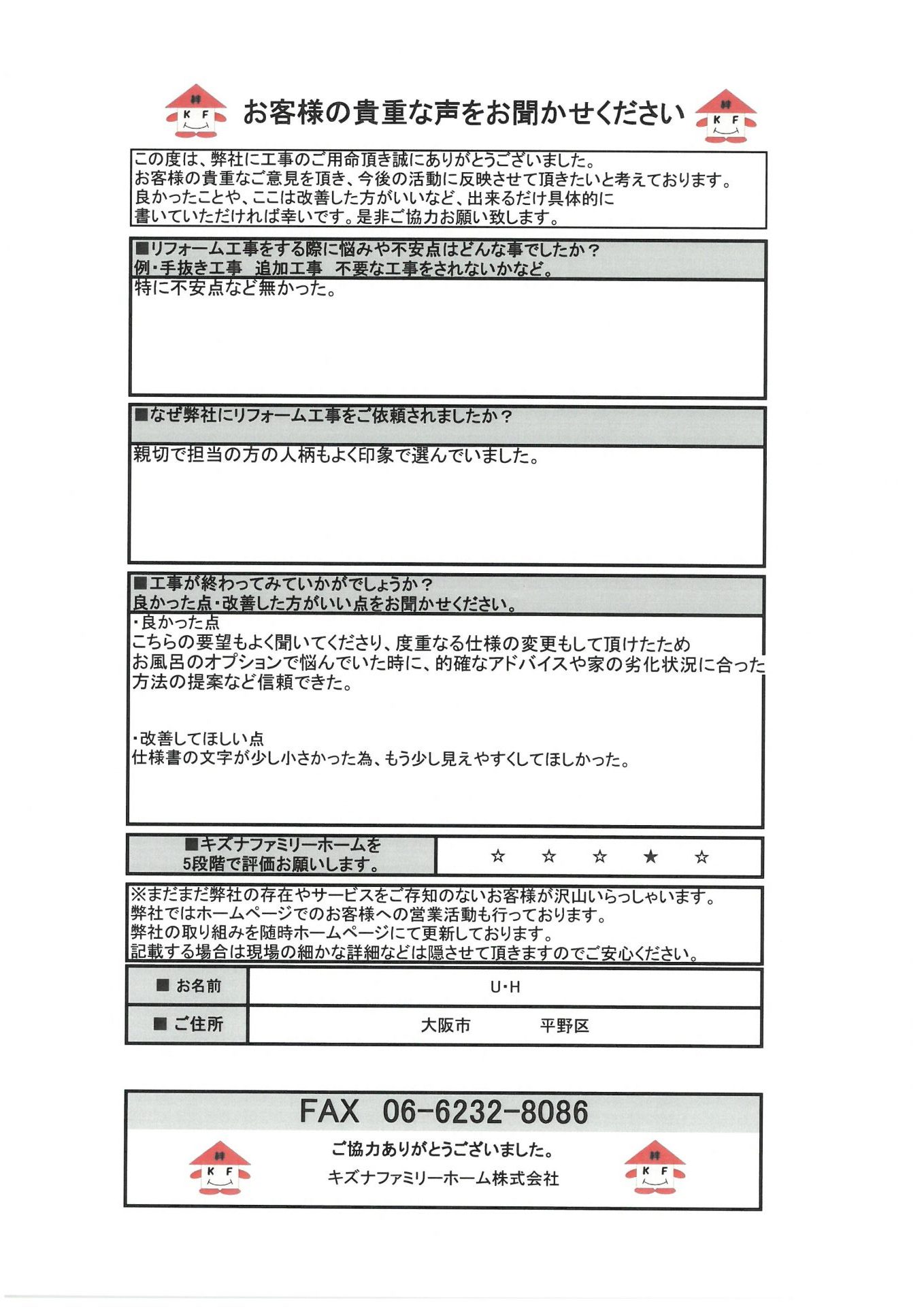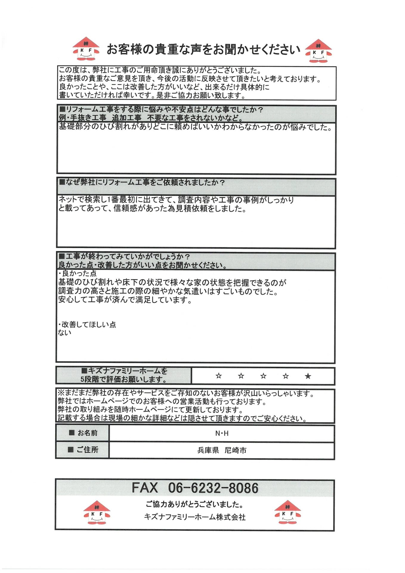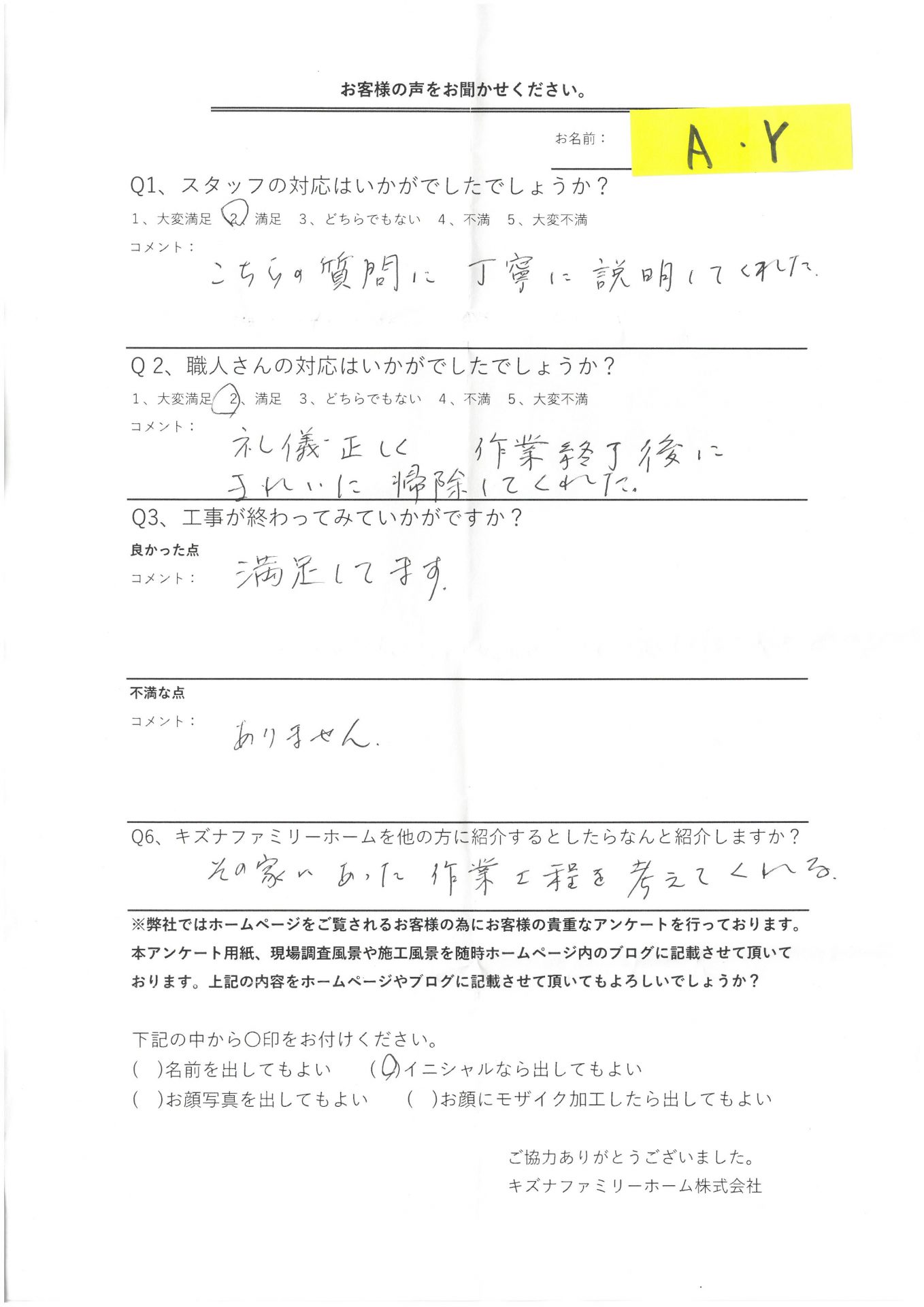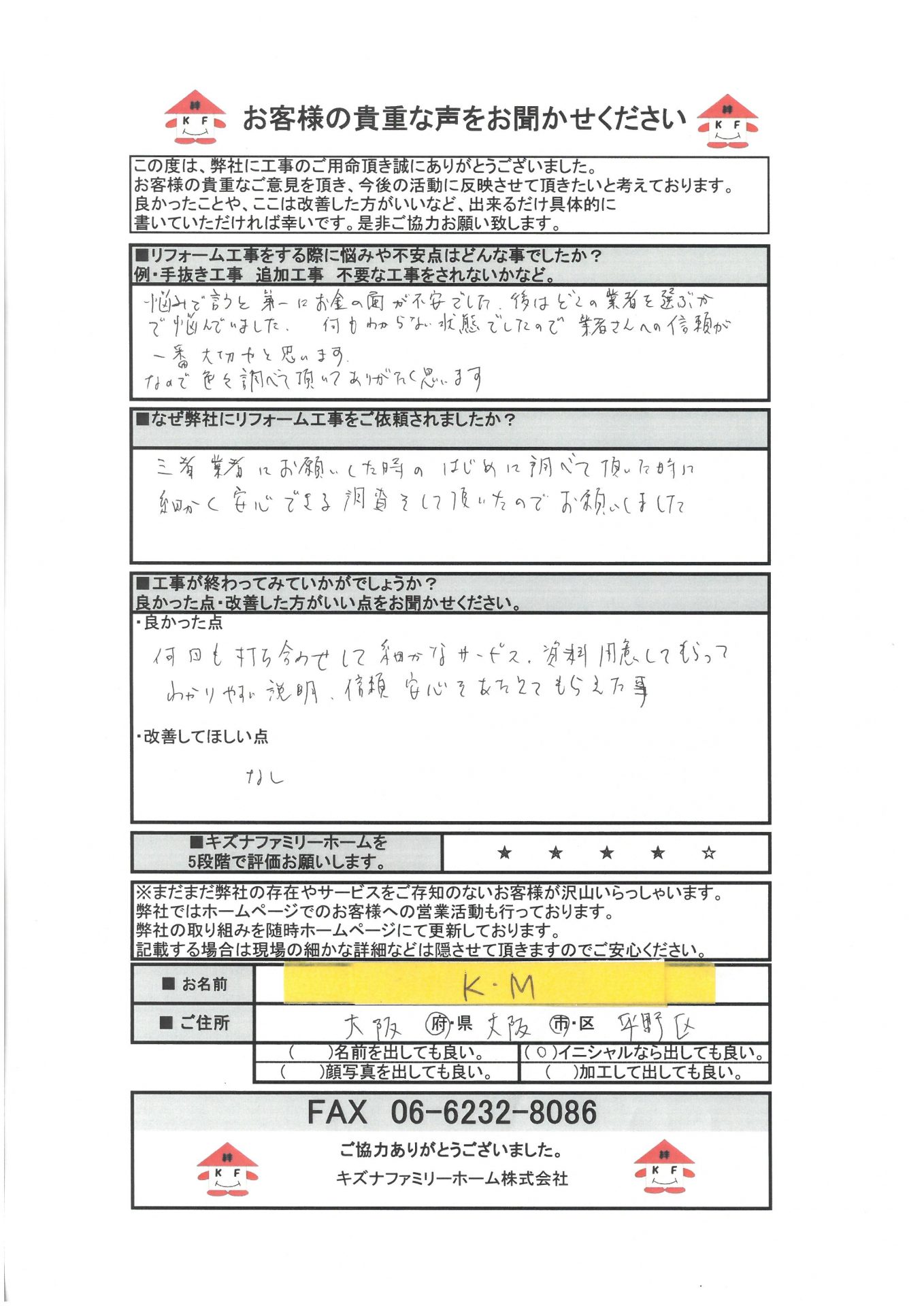 お客様の声 実際に施工させて頂いた”お客様の生のお声”です。 大阪市平野区K・M様屋根外壁塗装ベランダ防水工事でお世話になり貴重な声を頂... 大阪市平野区U・H様浴室ユニットバス施工バリアフリー化工事でお世話になり貴... 大阪市鶴見区O・T様トイレ内装リフォーム床張り替え工事ででお世話になり貴重... 大阪府守口市K・U様浴室タイルひび割れで張替工事でお世話になり貴重な声を頂... 京都府京田辺市F・M様基礎ひび割れ補強工事でお世話になり貴重な声を頂きまし... 大阪市城東区M・Y様トイレリフォーム工事でお世話になり貴重な声を頂きました... 大阪府枚方市A・Y様ユニットバストイレ排水マス交換工事でお世話になり貴重な... 京都府宇治市I・N様トイレ内装リフォームでお世話になり貴重な声を頂きました... 京都府城陽市 K・K様基礎補強工事でお世話になり貴重な声を頂きました... 兵庫県尼崎市N・H様基礎補強工事でお世話になり貴重な声を頂きました... « 先頭«...910111213...»最後 »