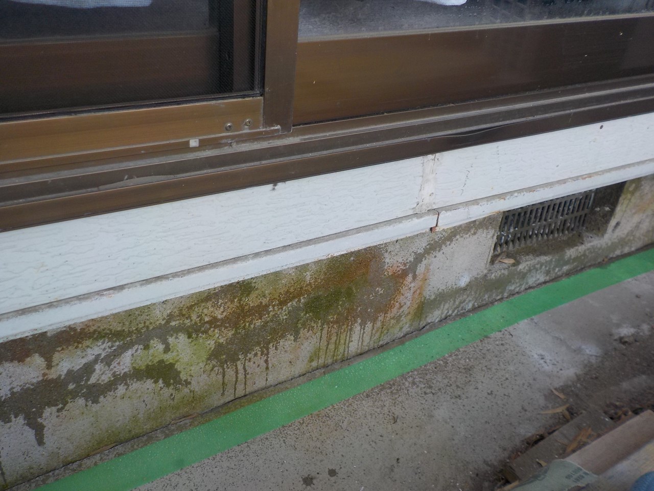 以前コーキングで埋めた跡がありますが、専用の溶剤じゃないと引っ張られる力に耐えれずクラックは広がります。