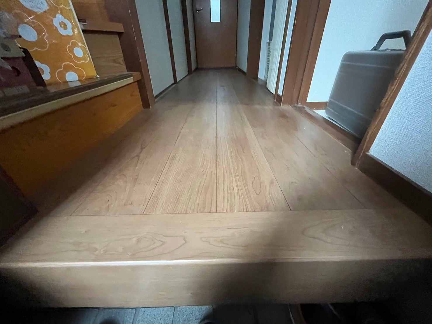 滋賀県草津市で玄関廊下のきしみでフローリングの上張り工事を実施