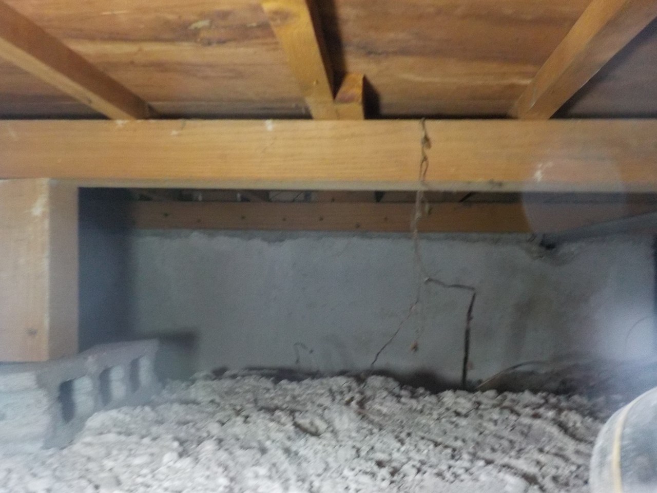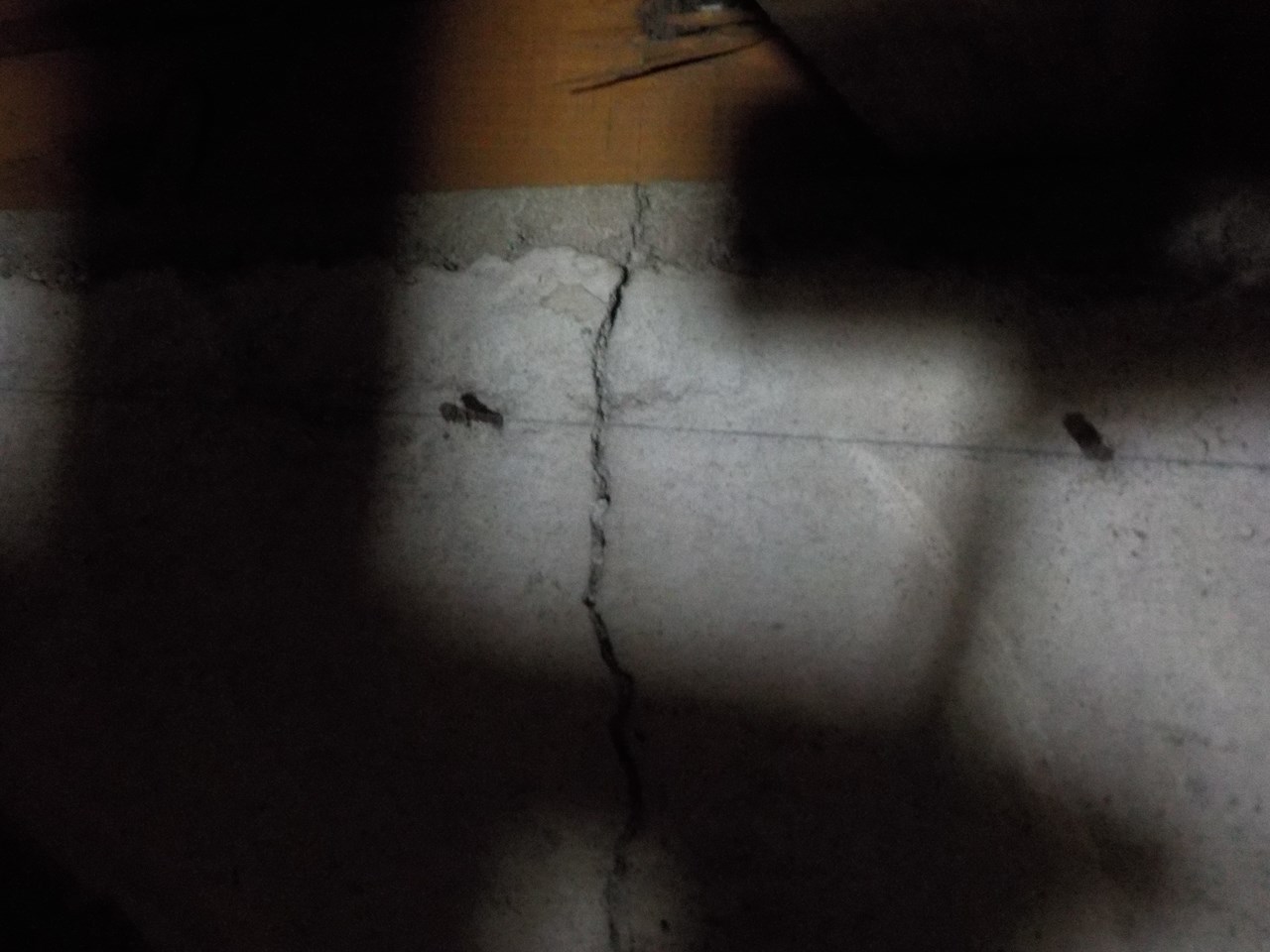 点検口から床下内部に入り基礎の内側に0.3㎜以上のクラックを発見。