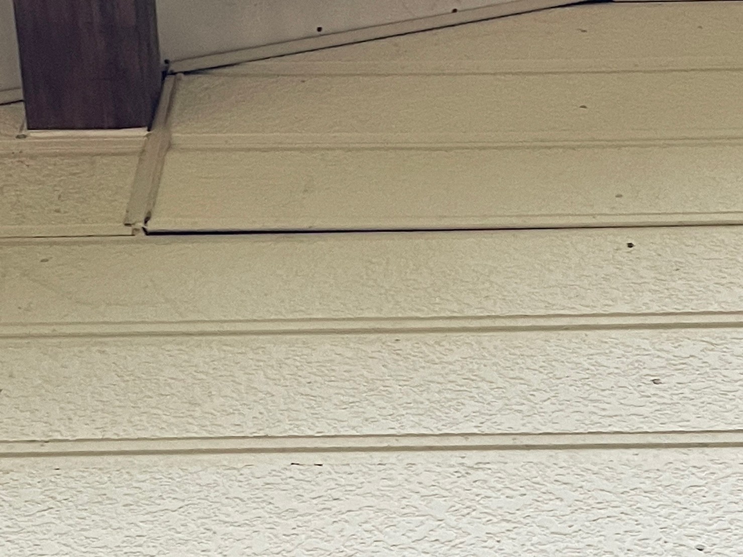 外壁のめくれと汚れが気なってお問合せを頂きました。 金属サイディングのサビによる汚れをケレン作業を行い外壁塗装を実施しました。