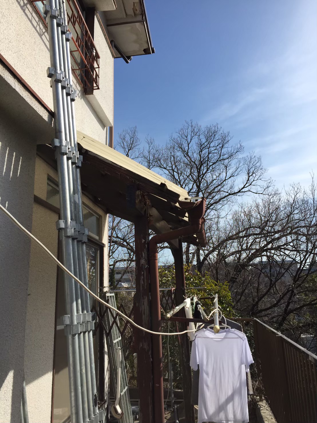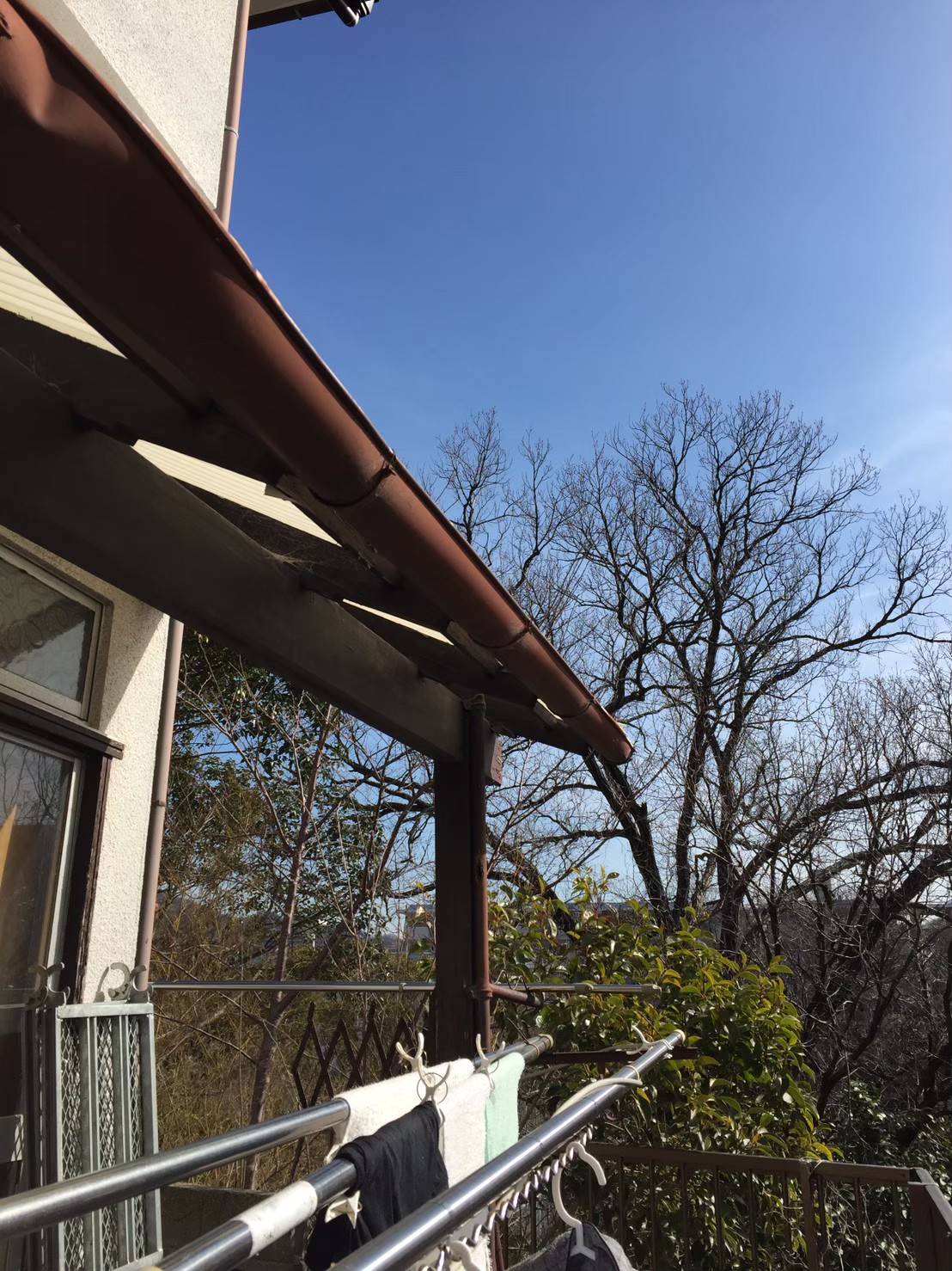 ベランダの下屋根(下屋)部分の鉄さびの状況