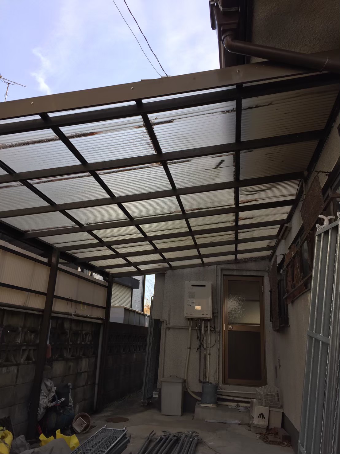 長年の汚れや砂埃等の汚れはありますが、 大きな破損部は無く一見綺麗に見えますよね?波板の種類にもよりますが、
