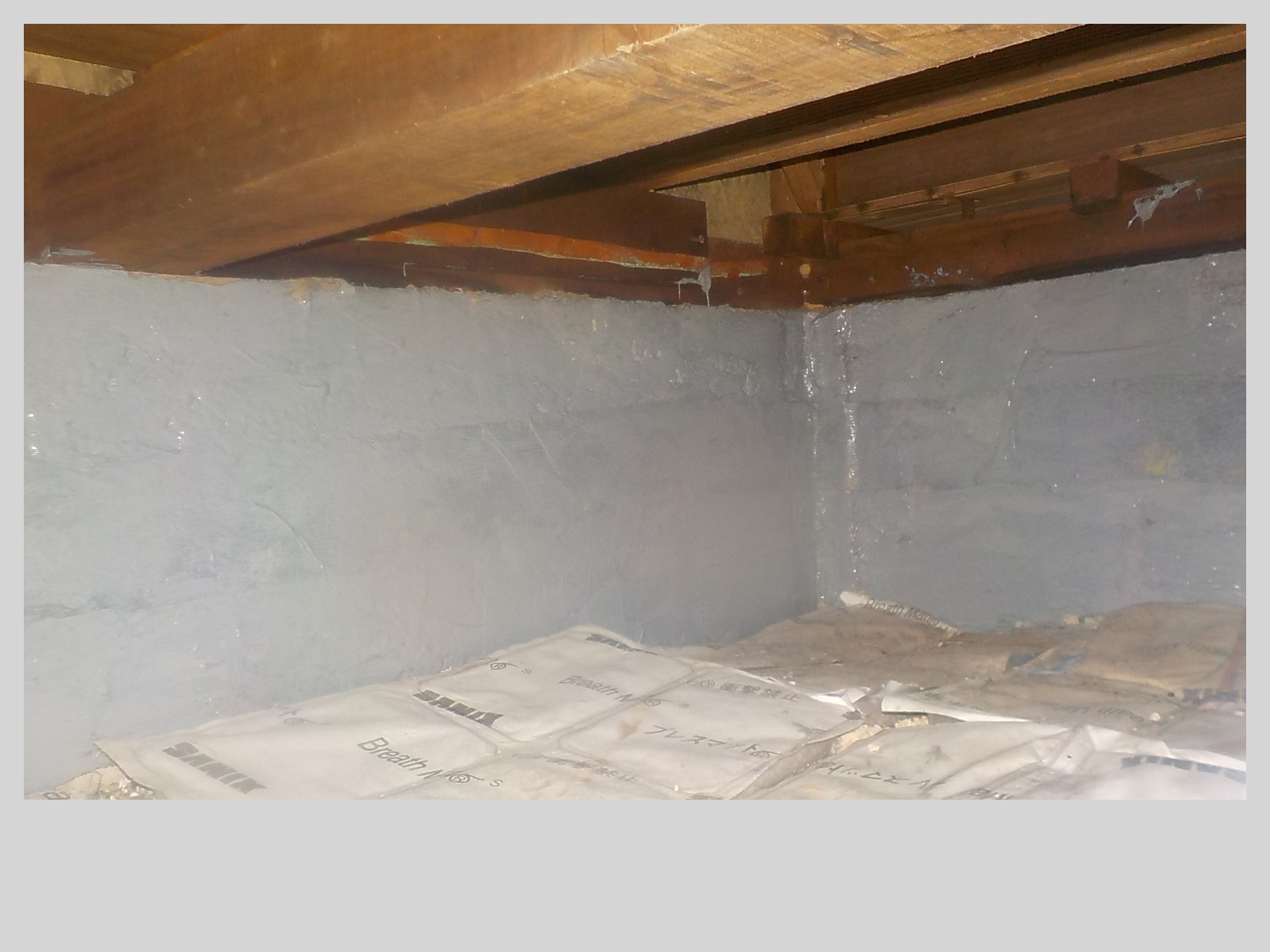 基礎部分に補強樹脂と強化繊維を用いて基礎の表面強度を高める工法で工事を実施。