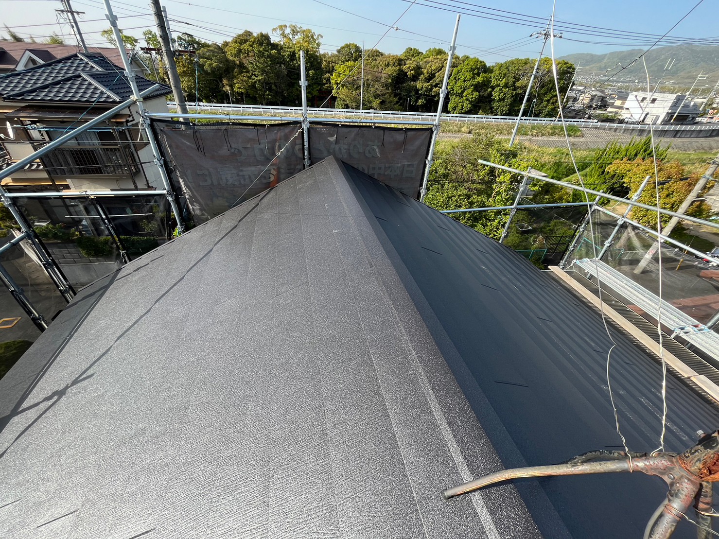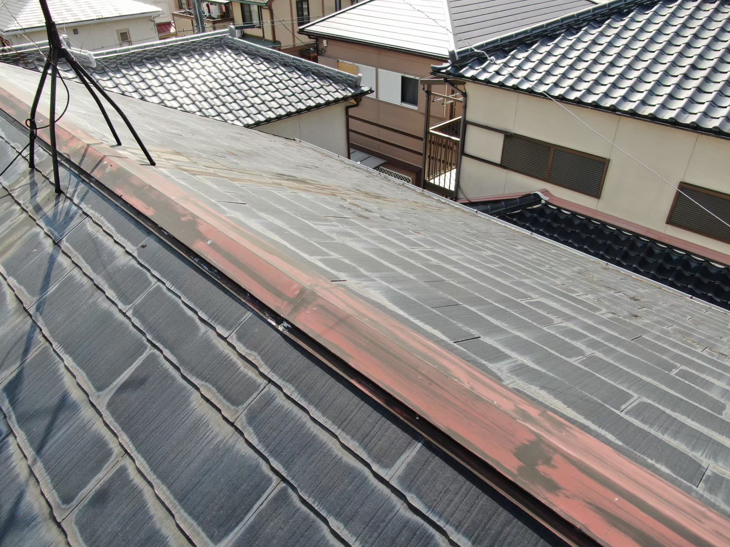 池田市でスレート屋根の経年劣化でガルバリウム鋼板屋根カバー工法の実施