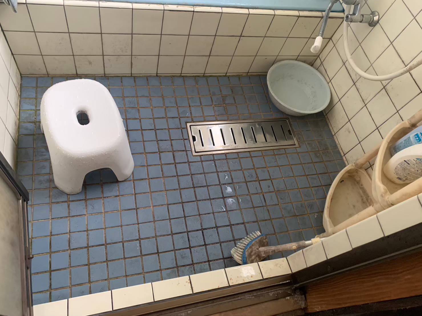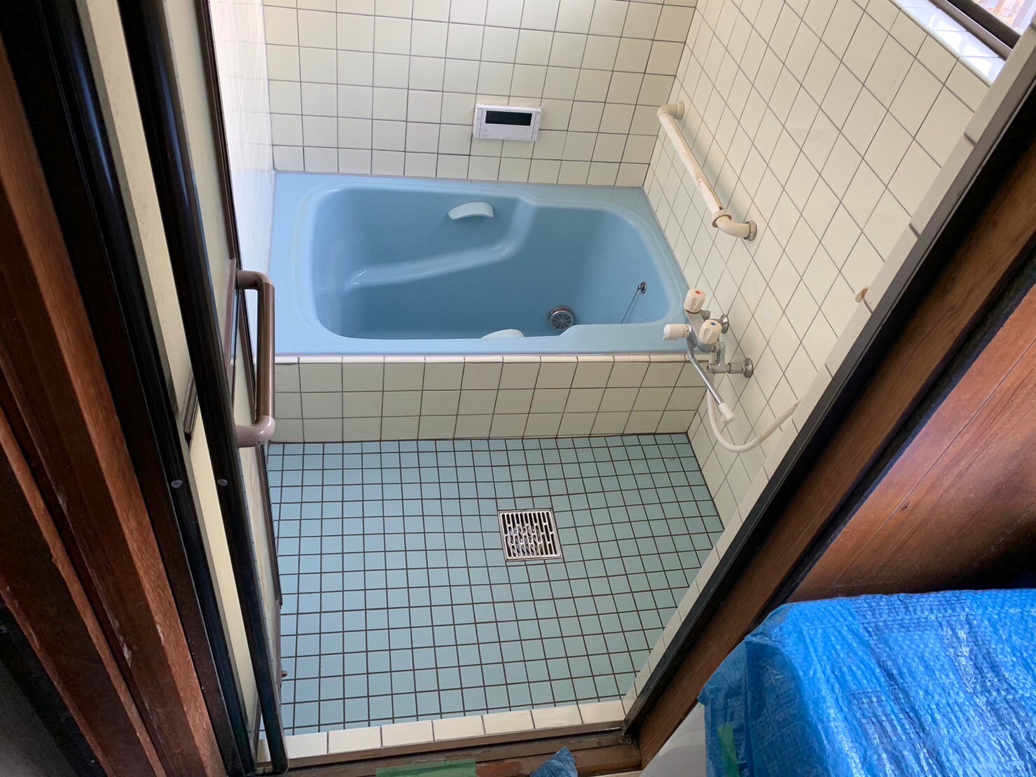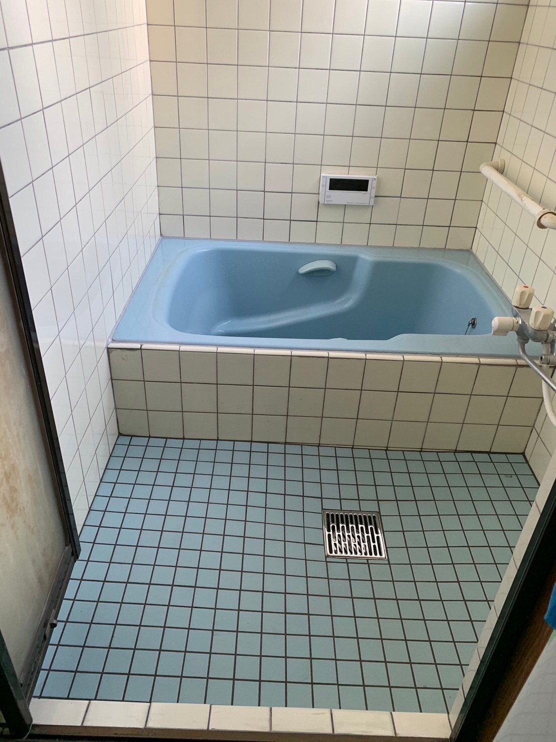 東大阪市で浴室床タイルの張り替えと壁タイルの補修工事を実施しました