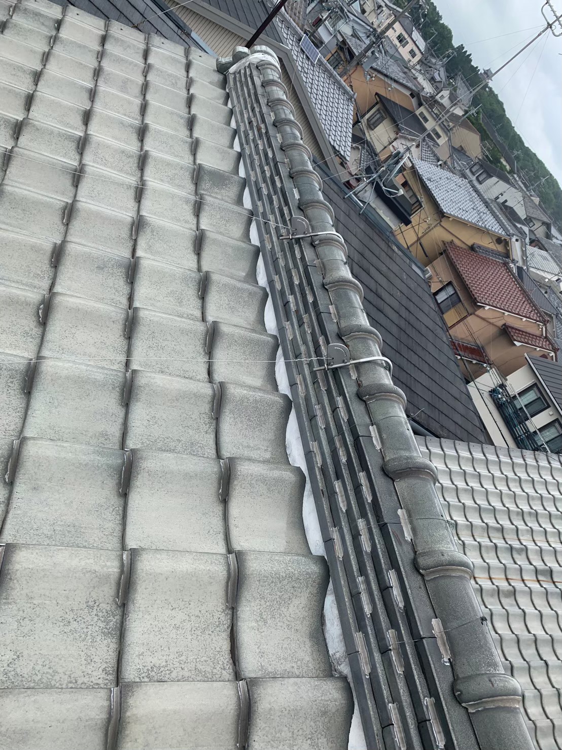 今回は大阪府池田市で瓦屋根の漆喰の詰め直し工事を実施いたしました。