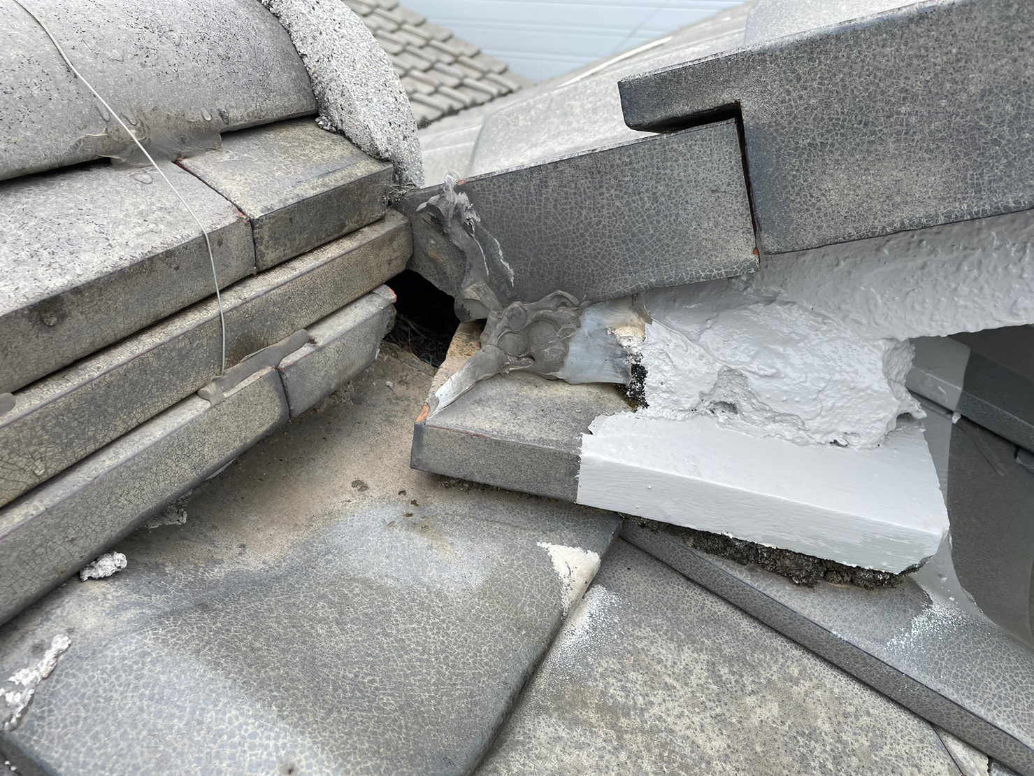 屋根漆喰は隙間を埋め、瓦の固定、隙間を埋め雨水の侵入の阻止をしていますが、