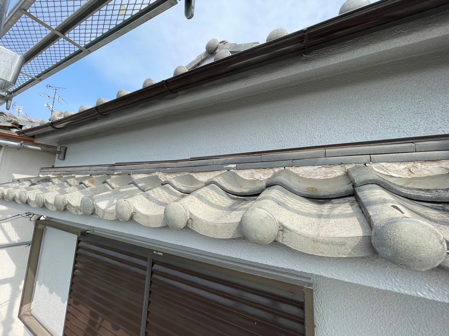 宝塚市で雨漏りの影響で瓦屋根の漆喰工事、瓦ズレ補修を実施