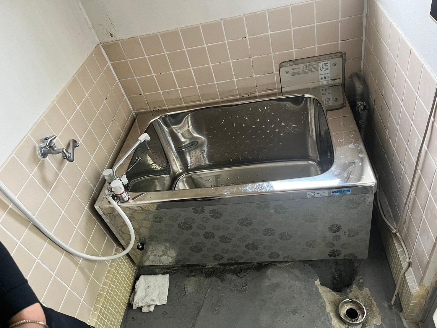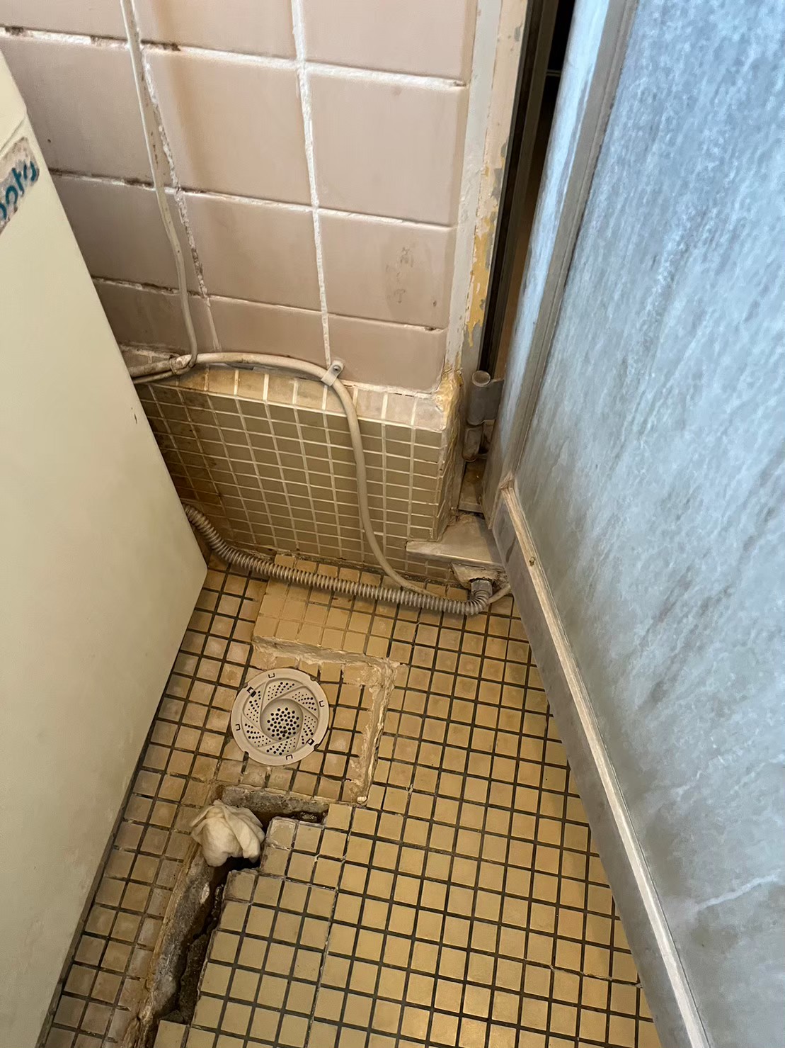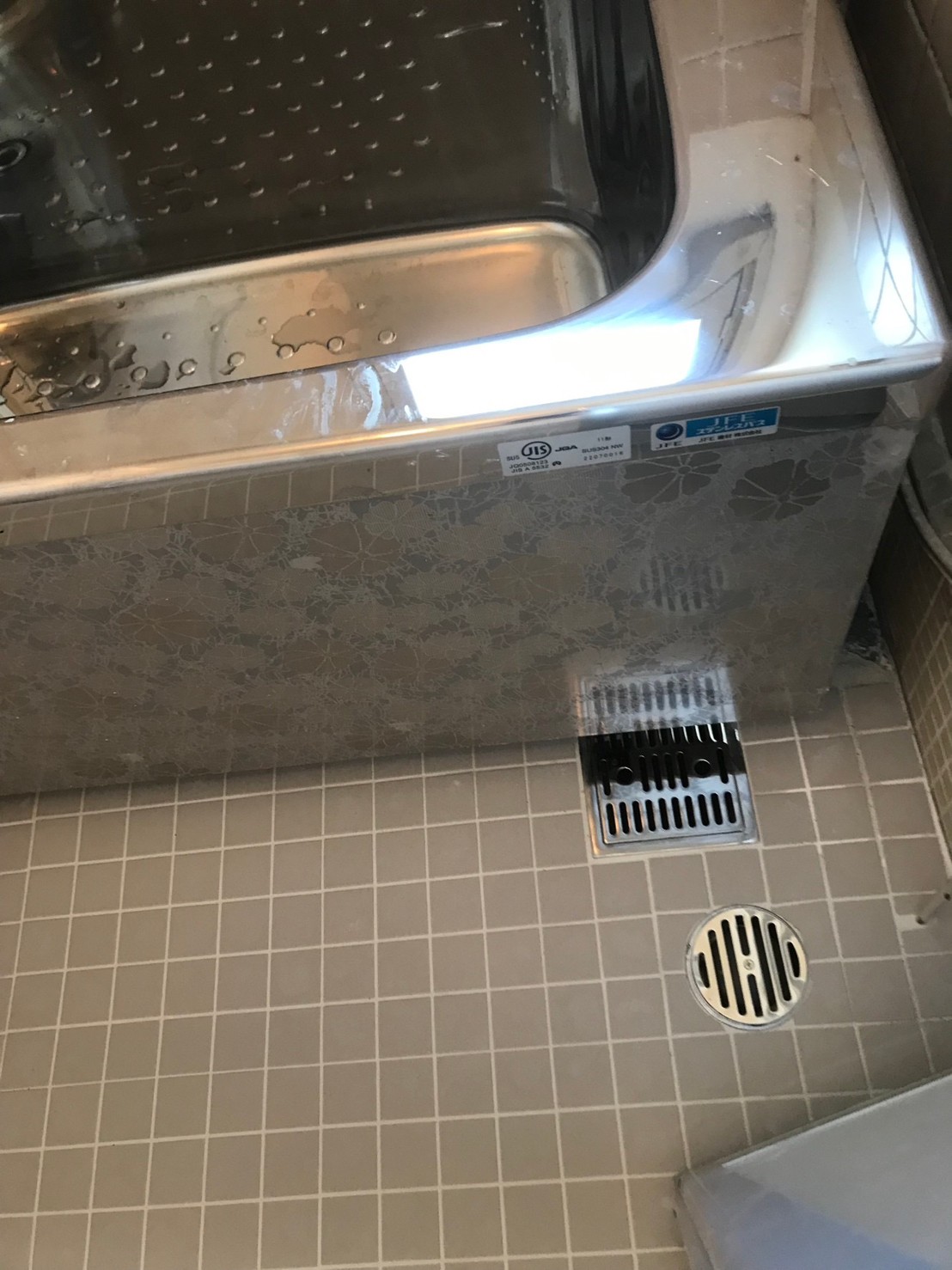 浴室のタイルでの水漏れが発生し浴槽の交換、土間タイルの張り替え防水工事、 折れ戸の交換を実施しました。