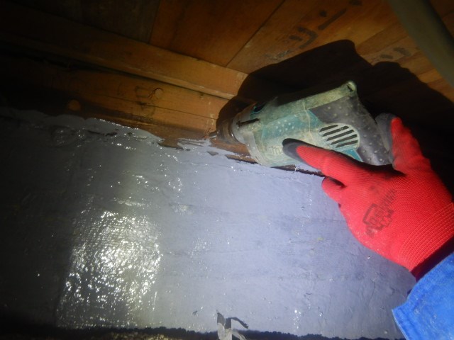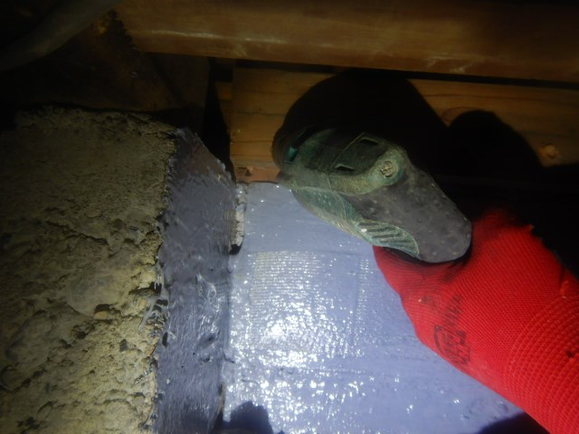 床のきしみで現場調査を実施し、水染みが発生し湿気が籠っていた為 白蟻消毒を実施しました。