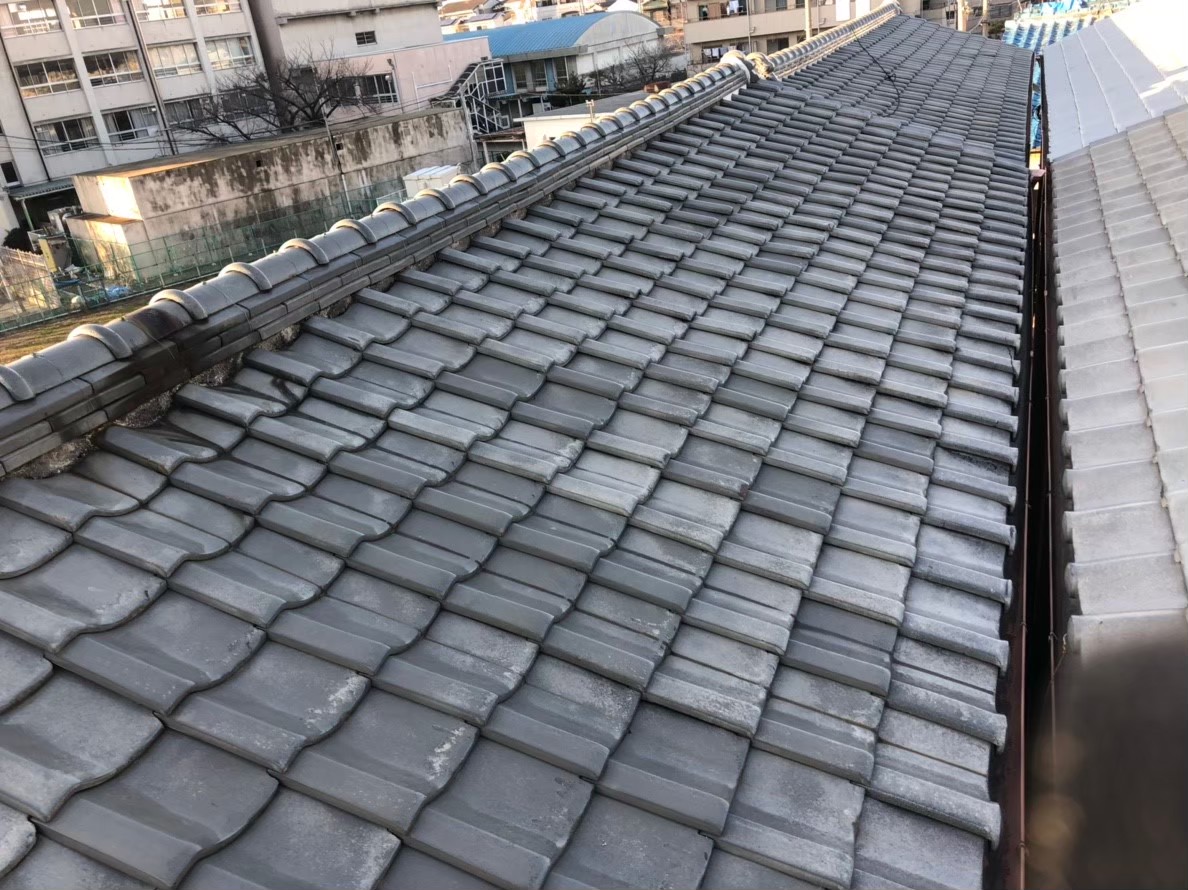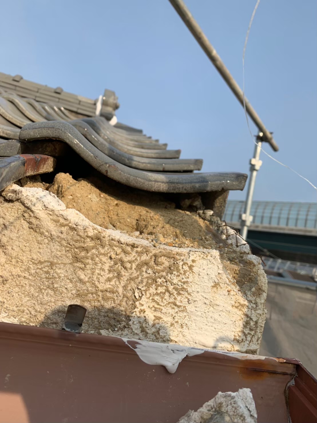 土葺き工法という工法を使用していました。昭和20年より日本の木造建築では良く使用されていた工法ですが、瓦の重量と土の重量が地震の揺れを大きくさせる為、耐震性の影響から土葺き工法は使用されなくなりました。