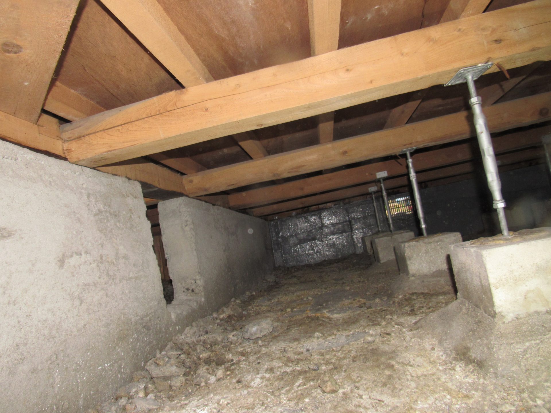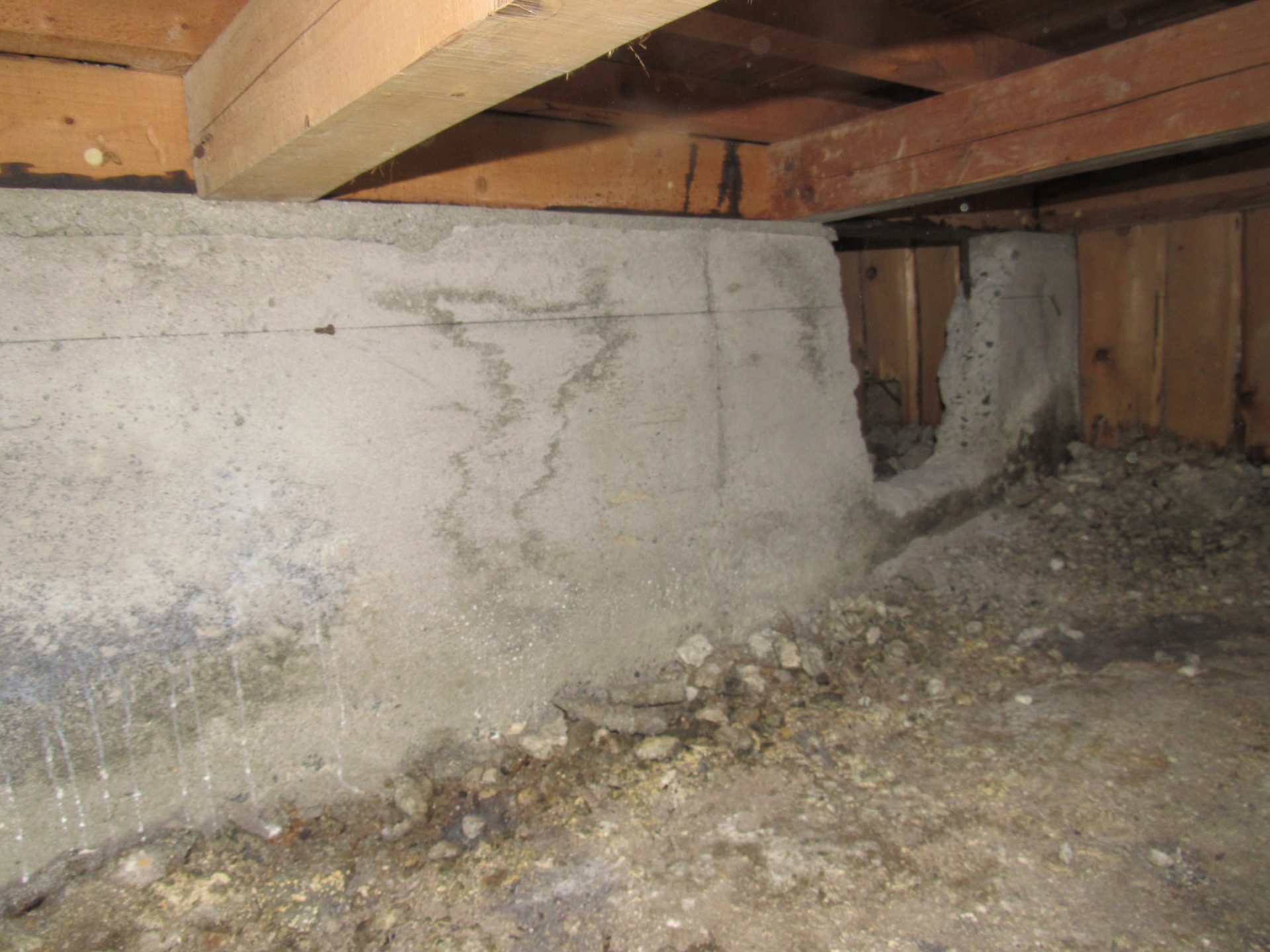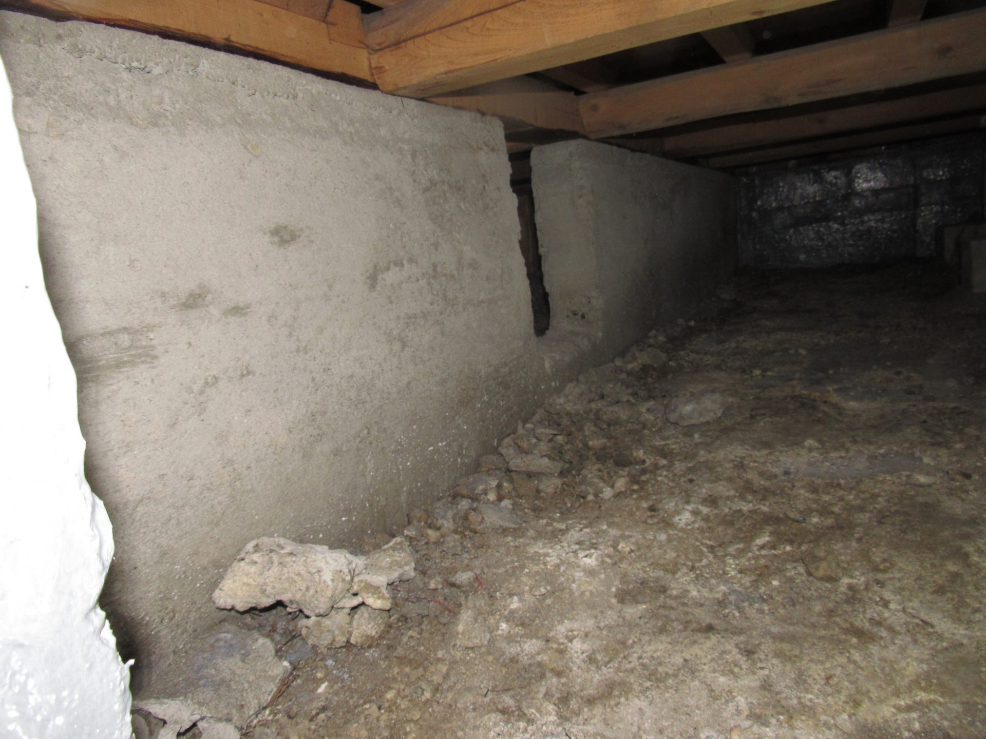 点検口から床下内部に入り基礎の内側に0.3㎜以上のクラックを発見。