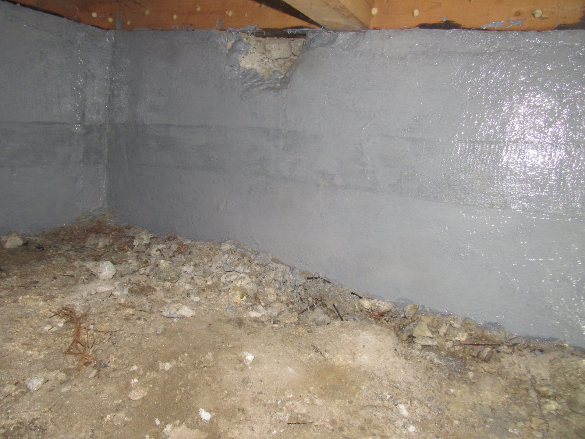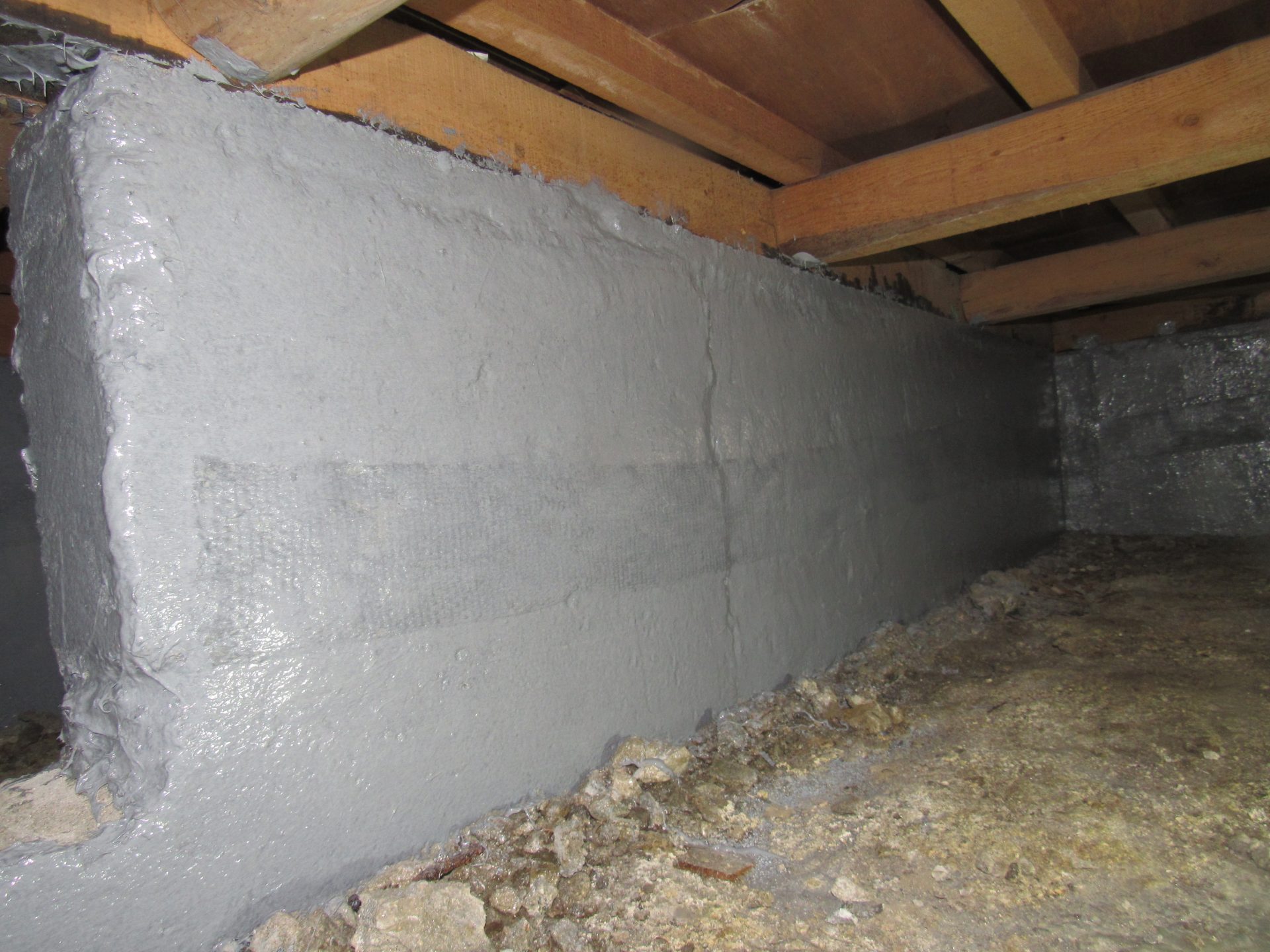 基礎部分に補強樹脂と強化繊維を用いて基礎の表面強度を高める工法で工事を実施。