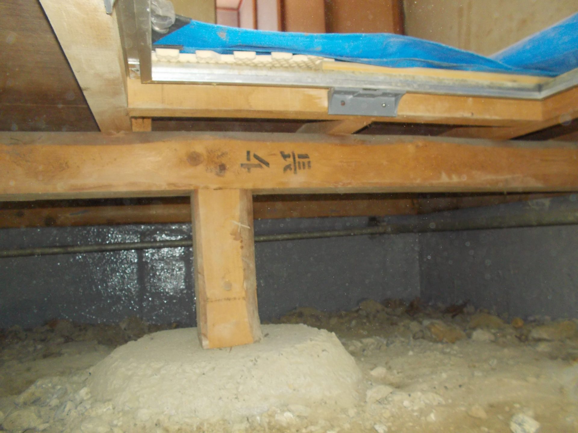 点検口から床下内部に入り基礎の内側に0.3㎜以上のクラックを発見。