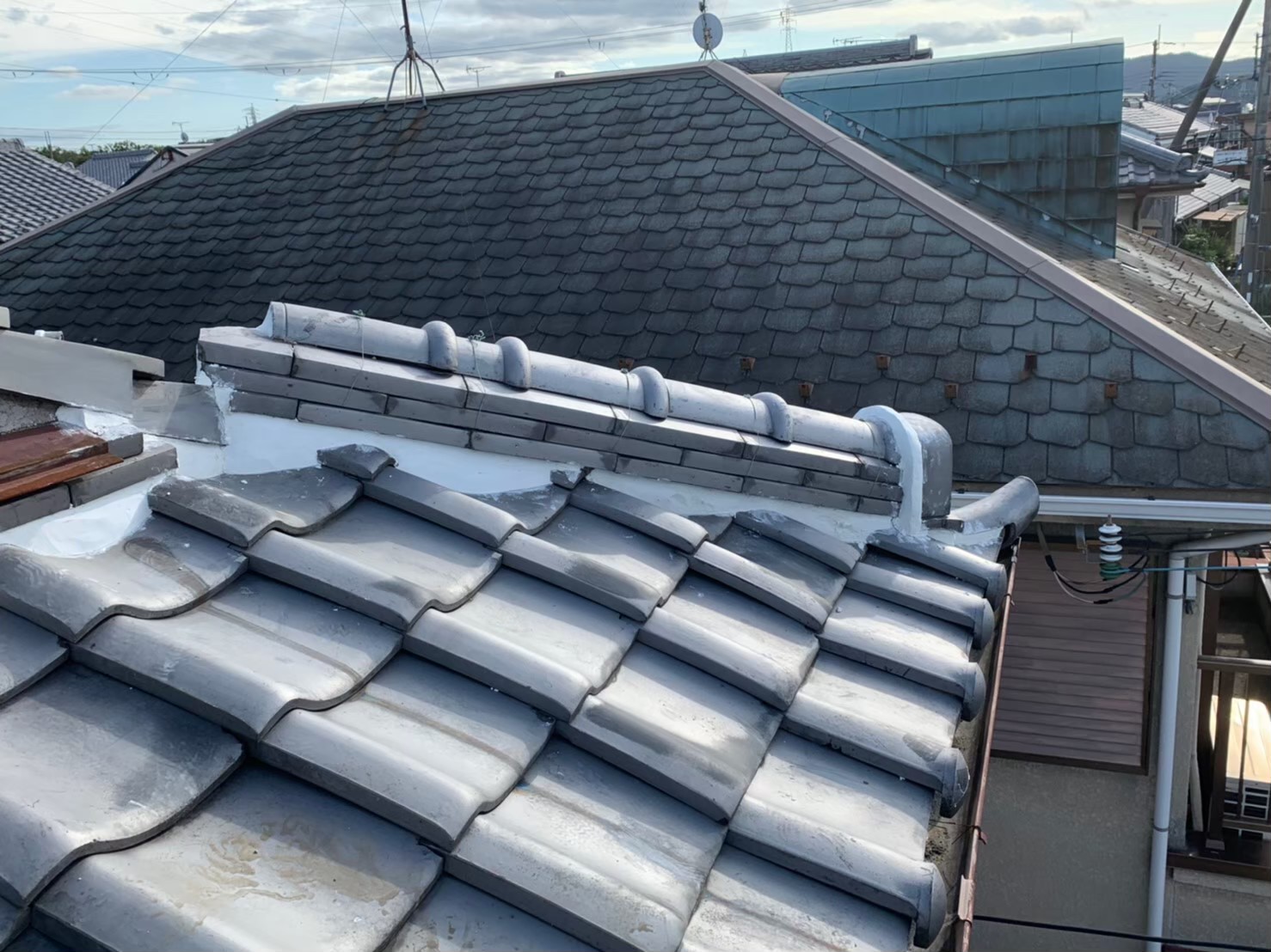 【大東市】瓦屋根の漆喰詰め直し工事を実施
