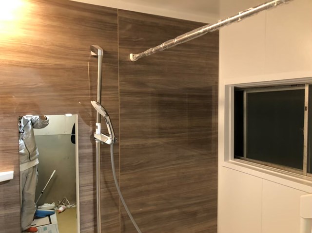 ユニットバスを組み立てた際の壁面の仕上げと壁クロスを こちらの工事は浴室のみの場合と脱衣場同時工事での工期の変動があります。 |