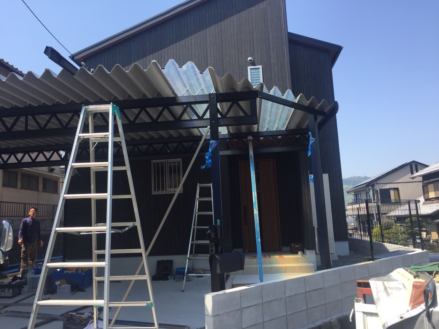 本日は2件大阪府河内長野市A様邸大阪府吹田市I様邸折板ガレージ設置の現場です