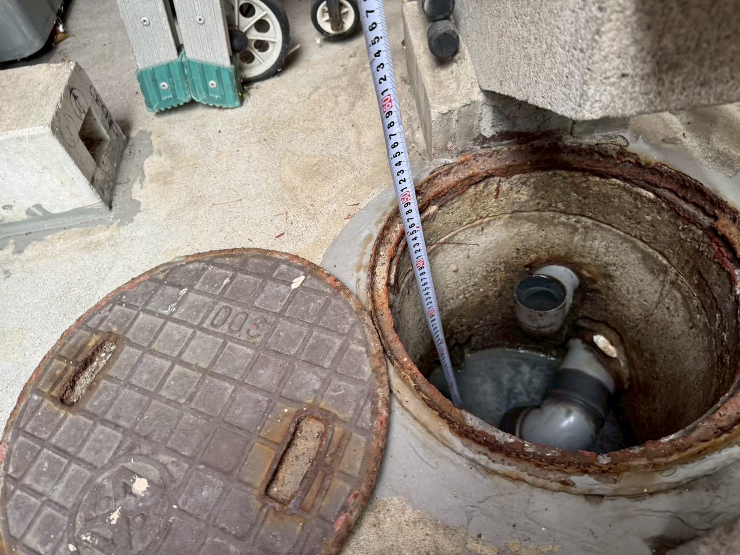 トイレ本体の状態や水の流れを確認。内部部品の劣化によって洗浄力が弱くなっていることが分かりました。また、外回りの会所枡も点検したところ、枡の劣化や汚れの滞留が原因で排水の流れが悪くなっている可能性が高いことが判明。