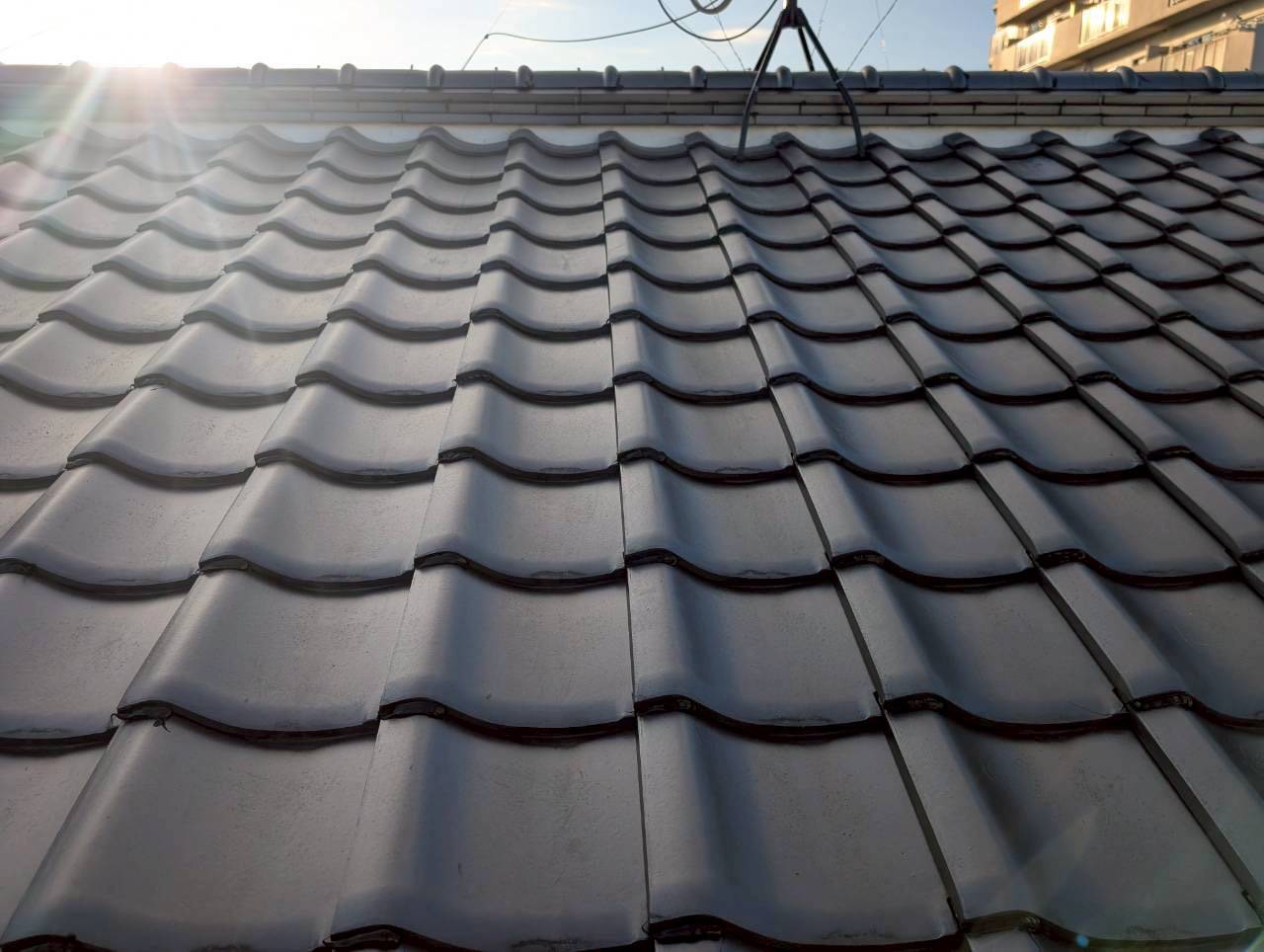 劣化していた漆喰を丁寧に剥がし、詰め直し工事を実施。 ひび割れや隙間をしっかり補修し、美しく均一な仕上がりに整えました。 これにより、雨水の浸入を防ぎ、天井のシミや将来的な雨漏りリスクを大幅に軽減。 |