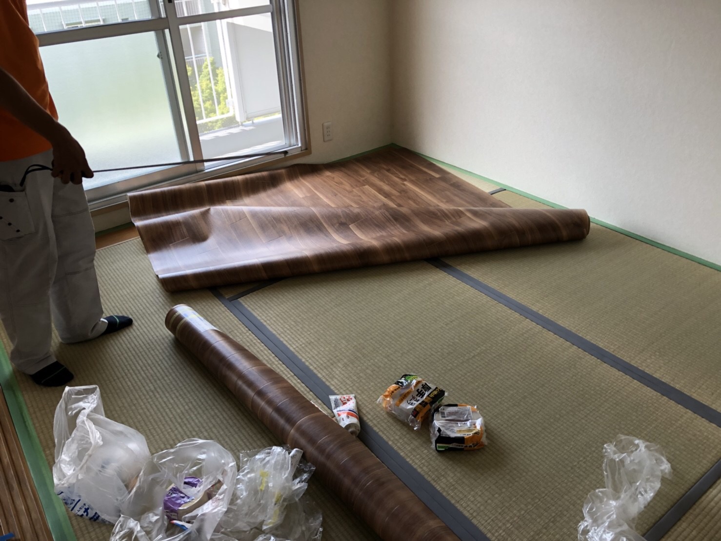 本日は集合住宅の和室の部屋にクッションフロアーを敷き込みました!