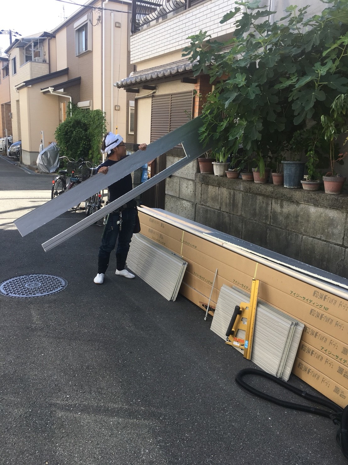 大阪吹田市で地震被害のあった外壁をサイディング工事を行います。