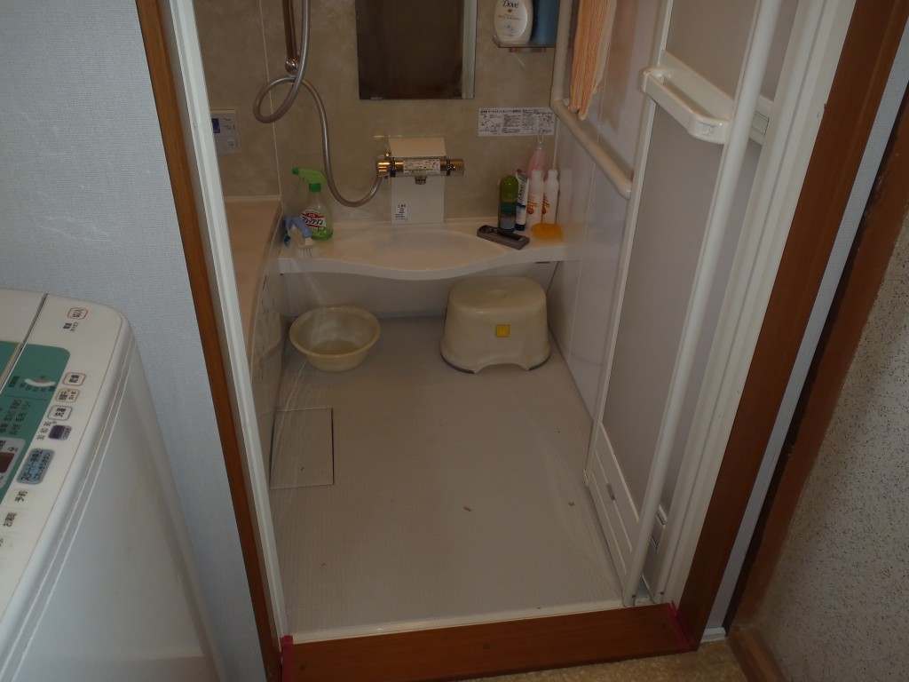 タイルの床もツルツルして滑りやすく足元が気になるのでユニットバスにしたいとのご依頼でした。