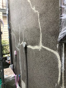 古くなった外壁を塗装の際に、かなりあったクラック箇所を補修。 黒ずんでた外壁が新築のような、色合いに!! 工事写真提出!わかりやすく作業説明!!