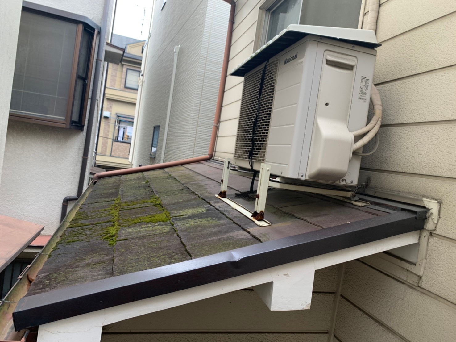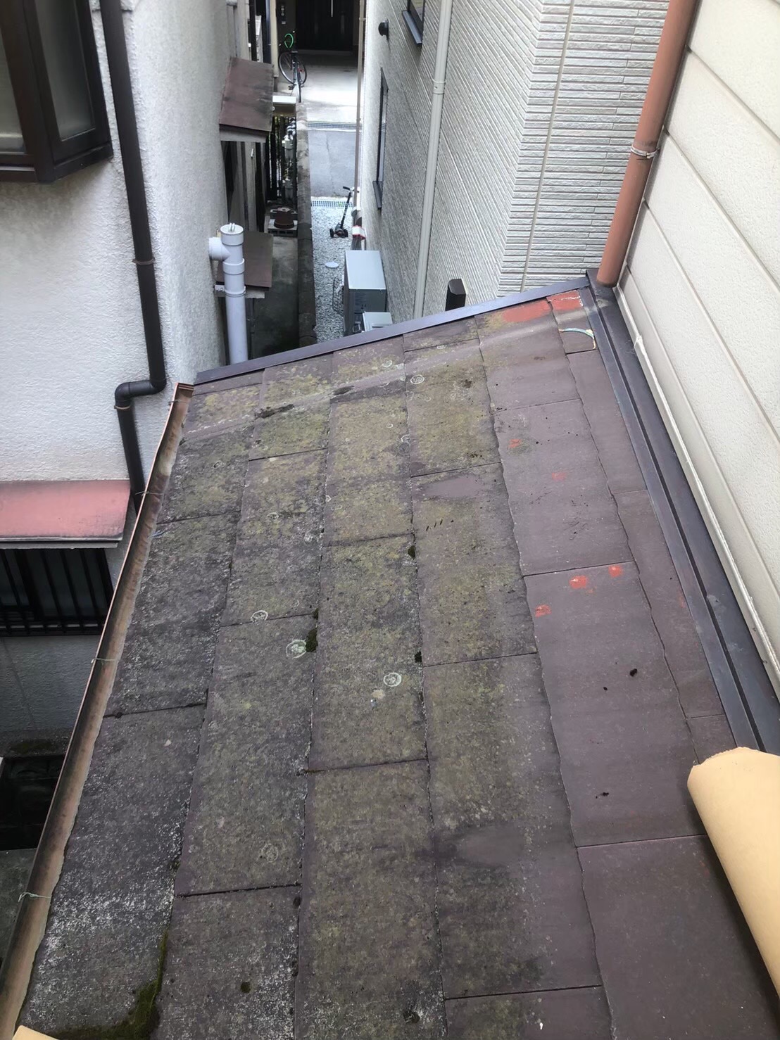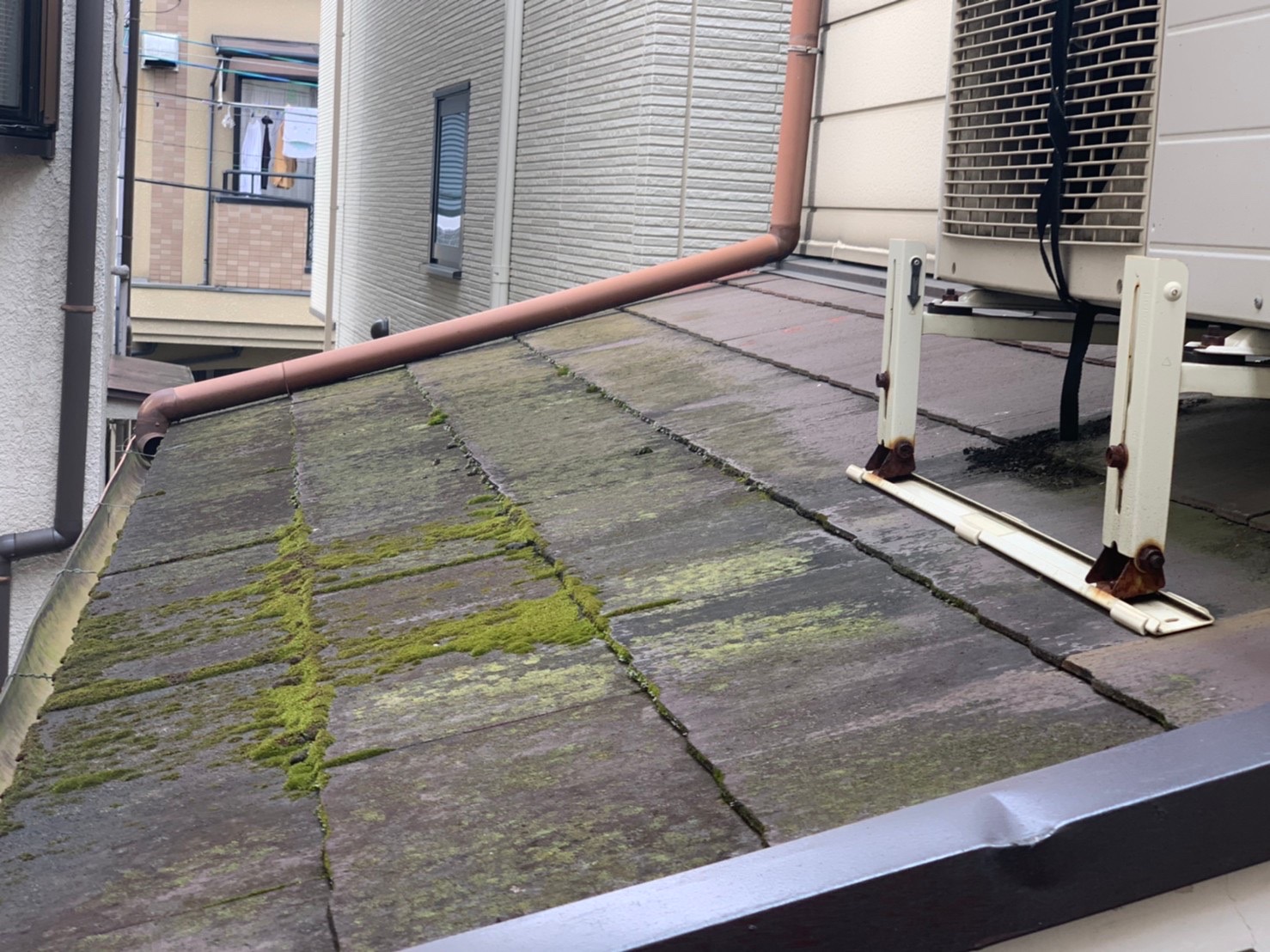 今回は下屋根のスレート屋根でコケが発生しており、