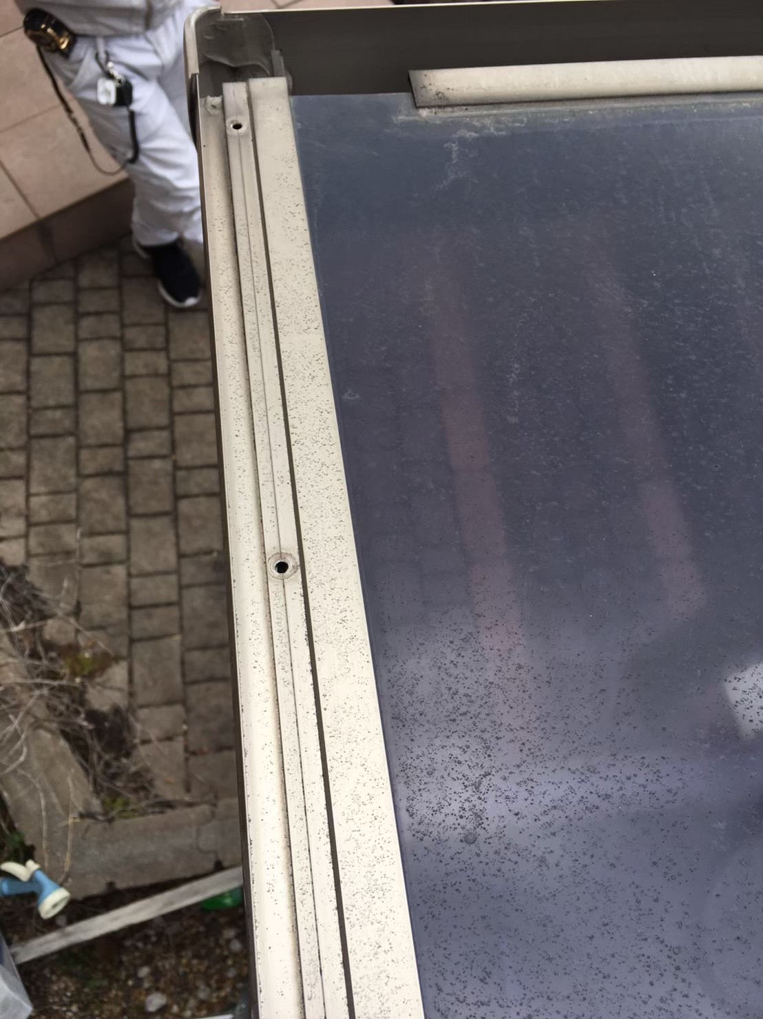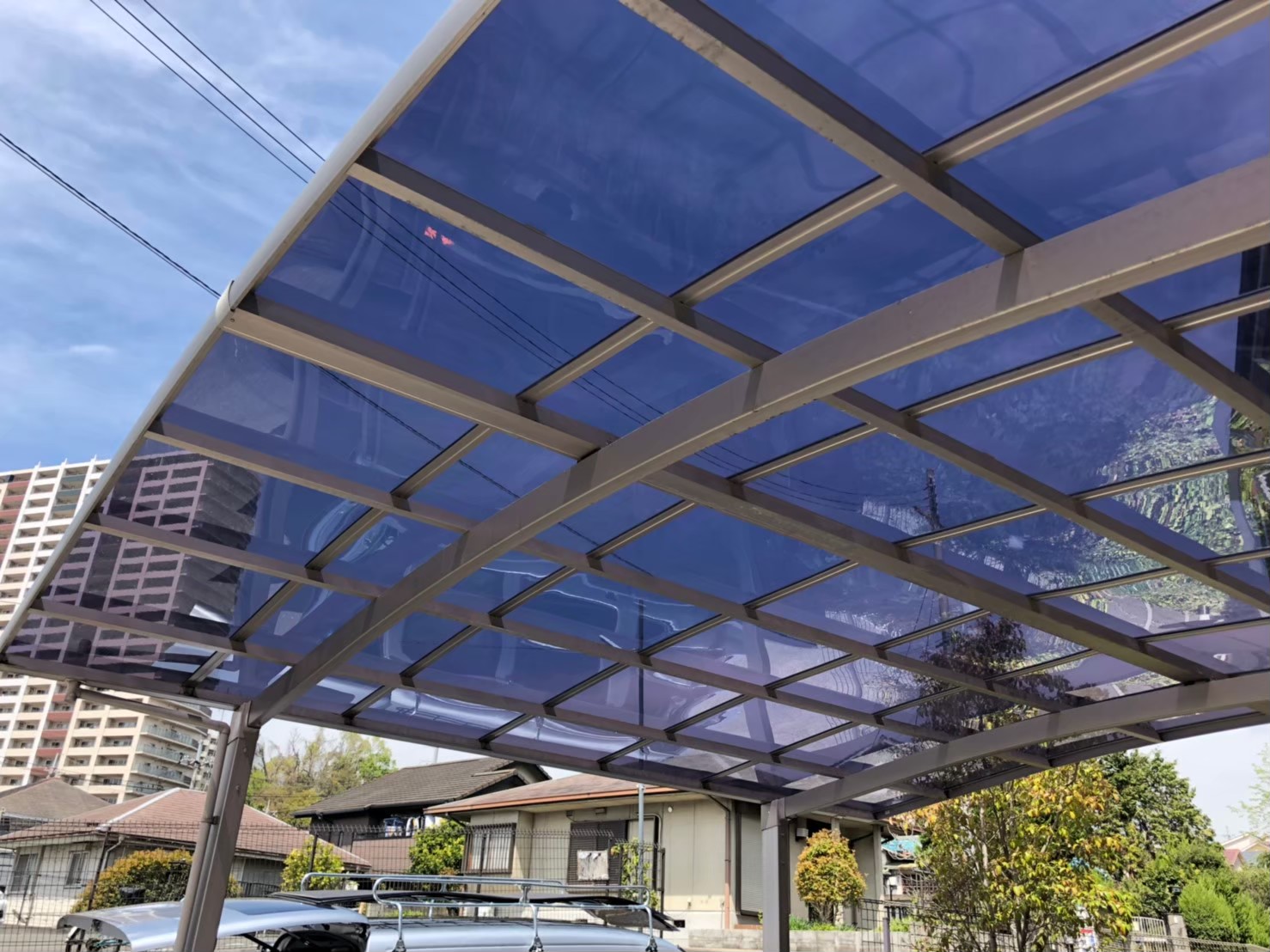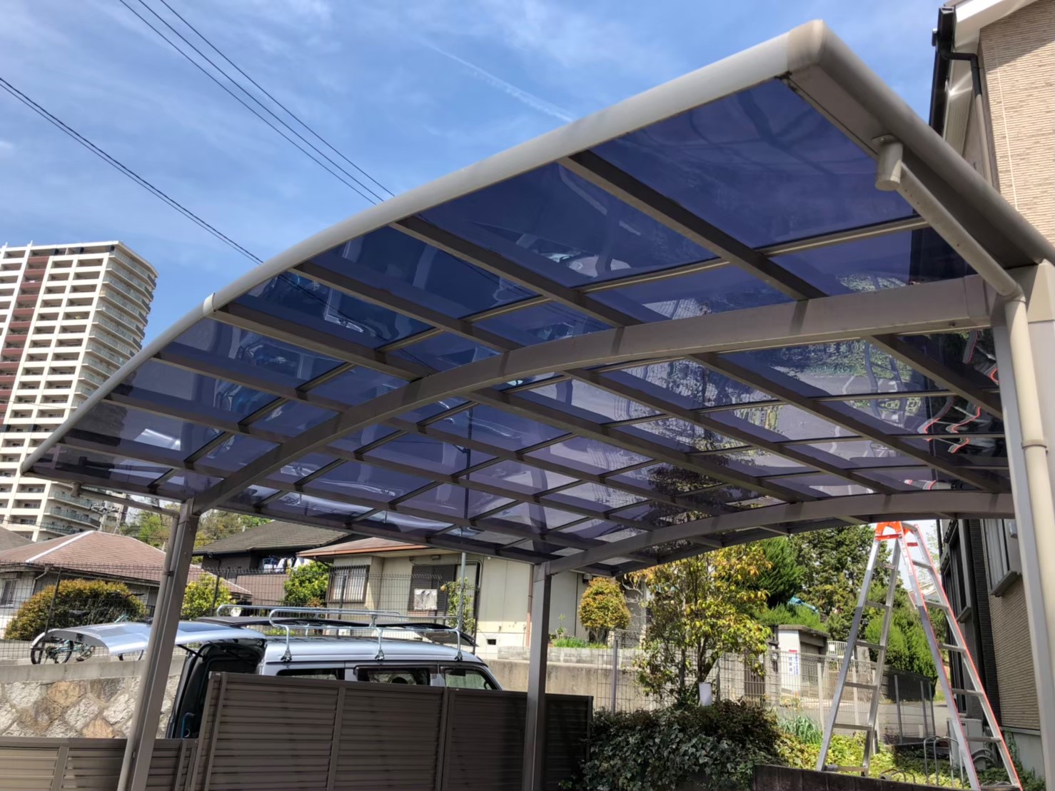 台風の影響で破損したカーポートの平板の交換を行いました。 今回はカーポートの平板には長年の汚れもあり、 全ての平板を交換いたしました。