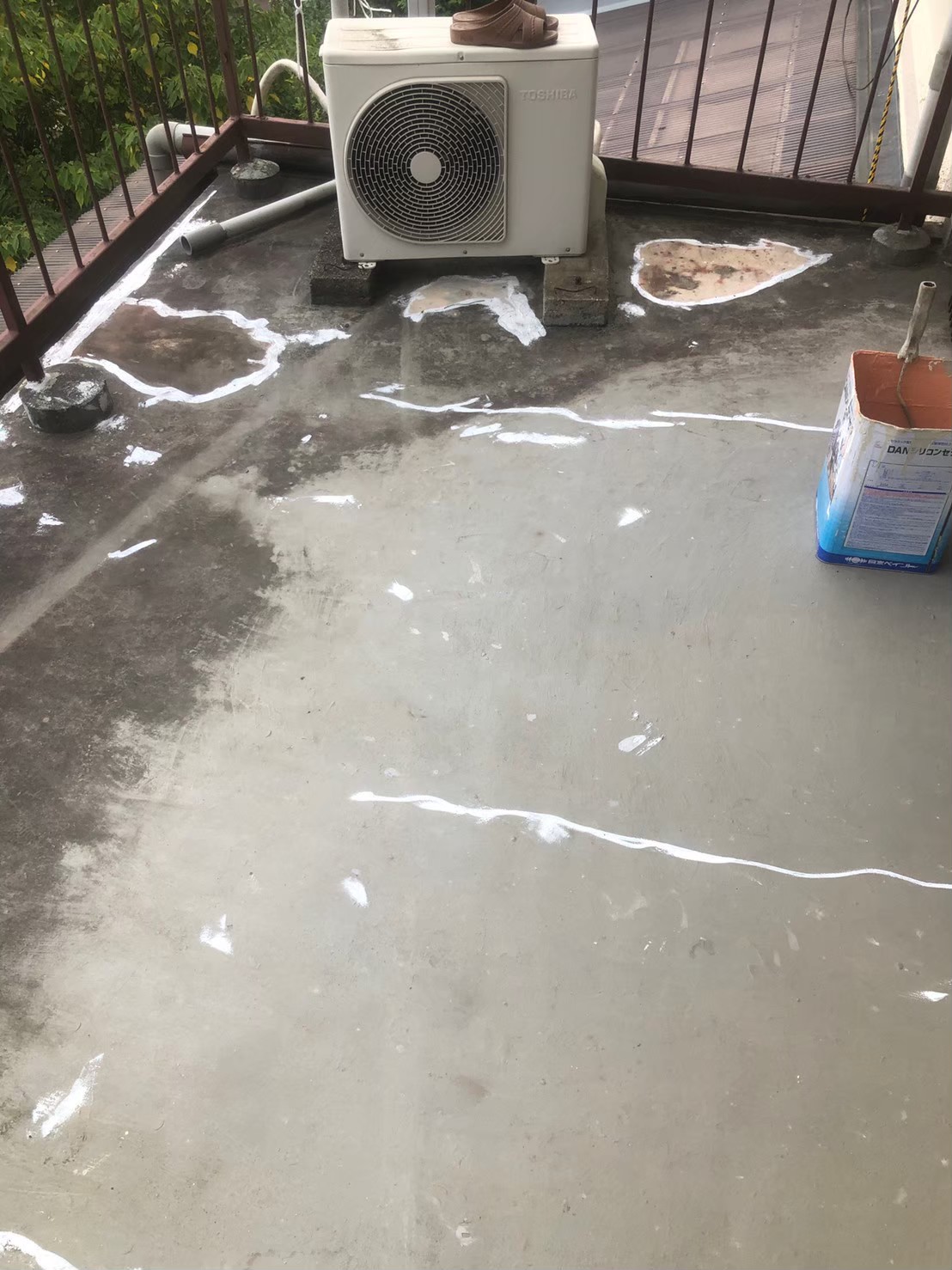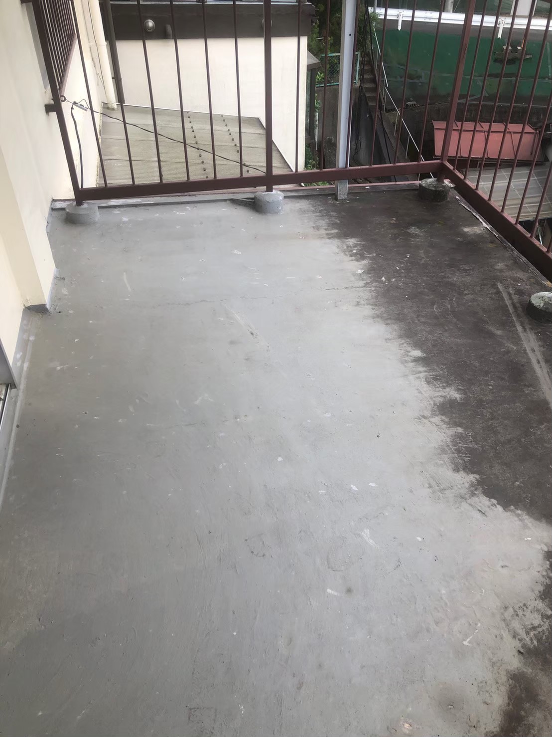 水はけが悪くなったベランダで黒ずみが発生し気になりご依頼されました。 ベランダの防水層の経年劣化、ベランダのひび割れが発症していた為、 ベランダひび割れ補修をし、ベランダ防水工事を行いました。