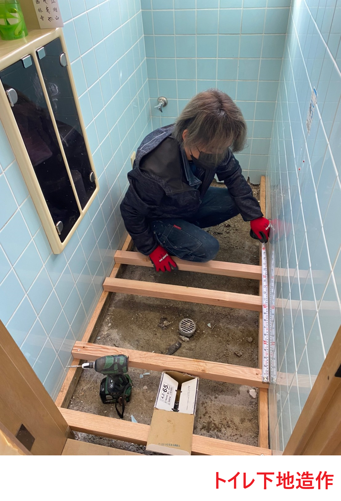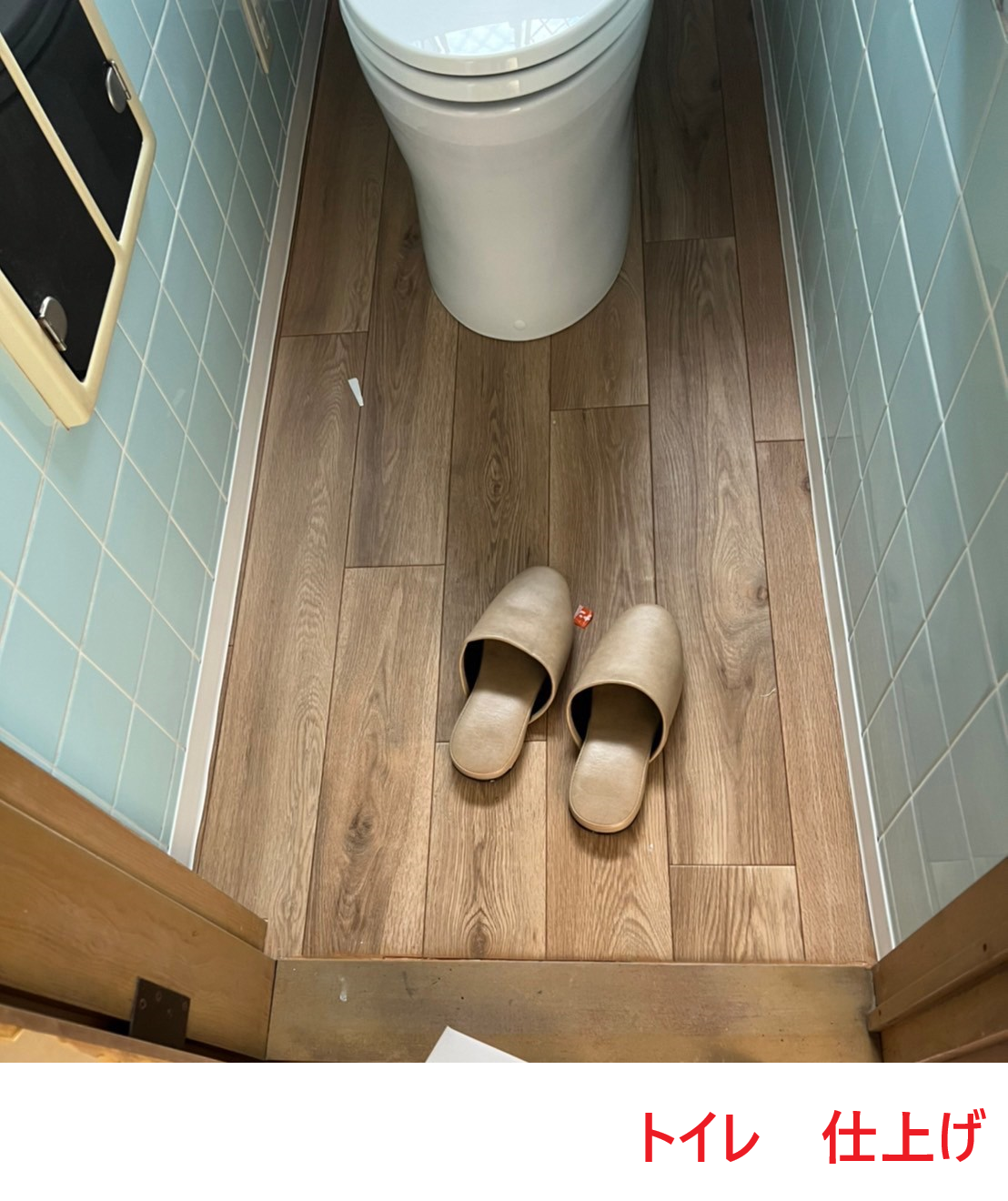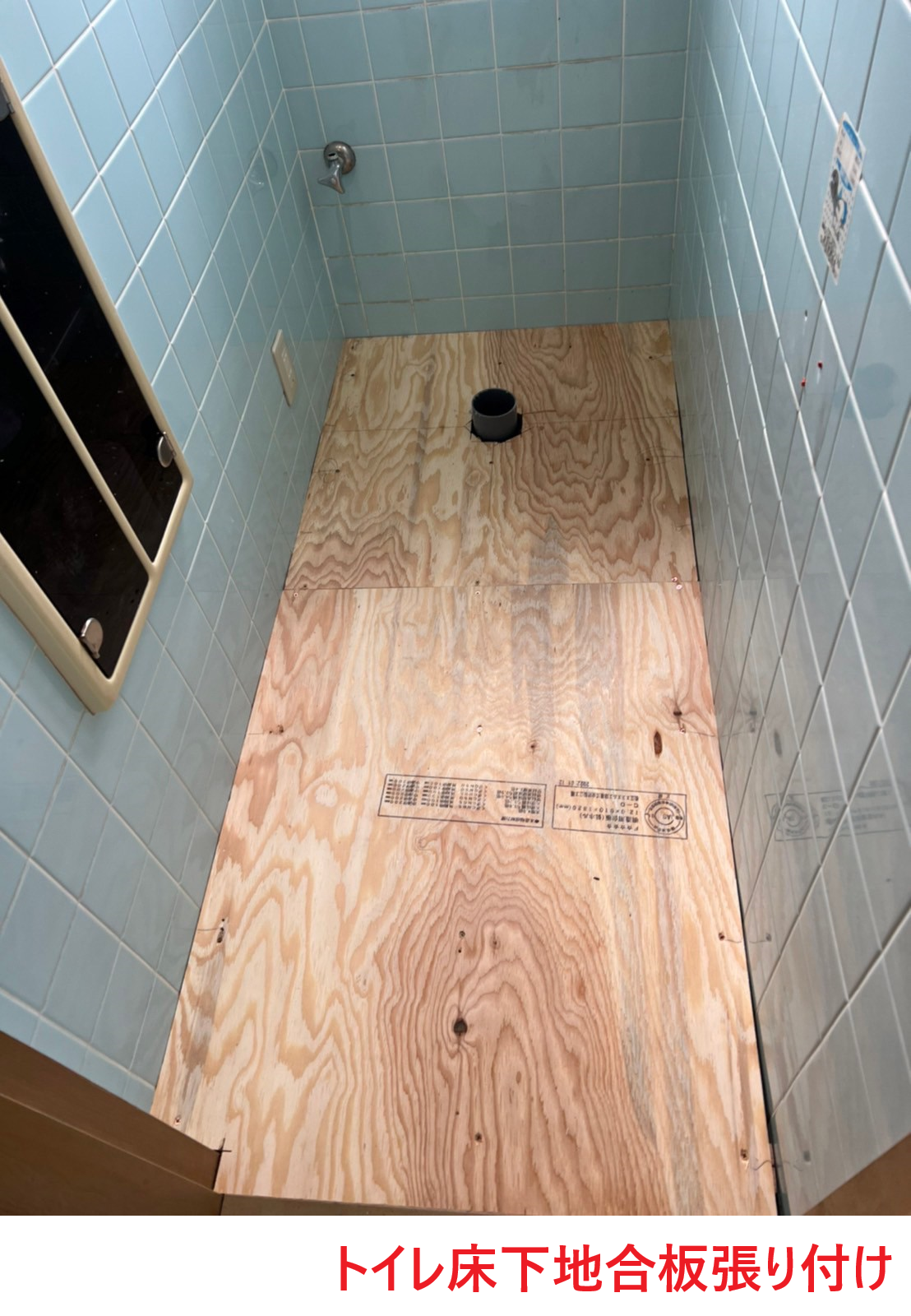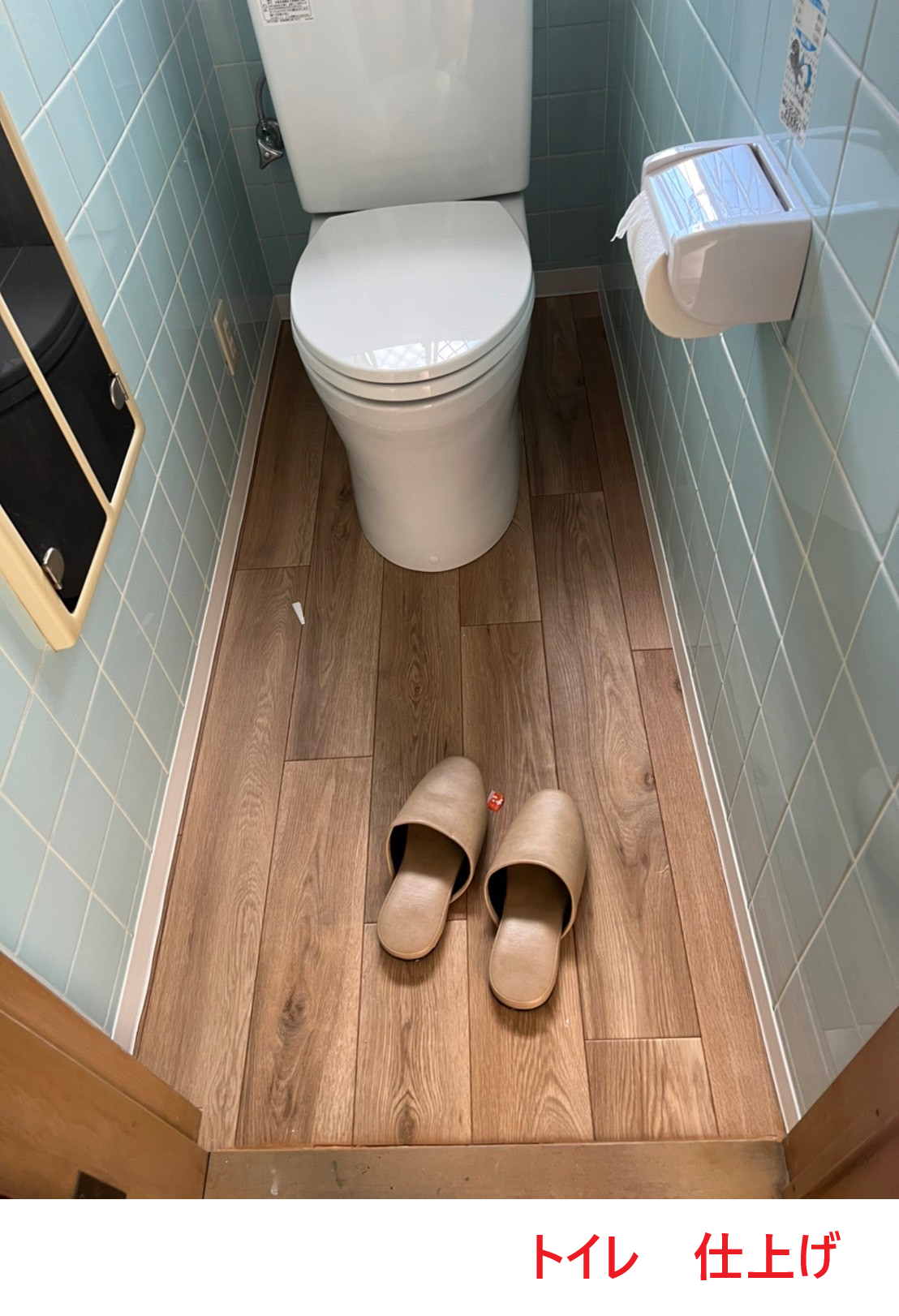 脱衣場の床のきしみが原因でお問い合わせをしました。 家屋調査の結果トイレの配管の漏水が原因で木材の強度が低下しており 劣化の原因のトイレの改装リフォーム工事を実施致しました。
